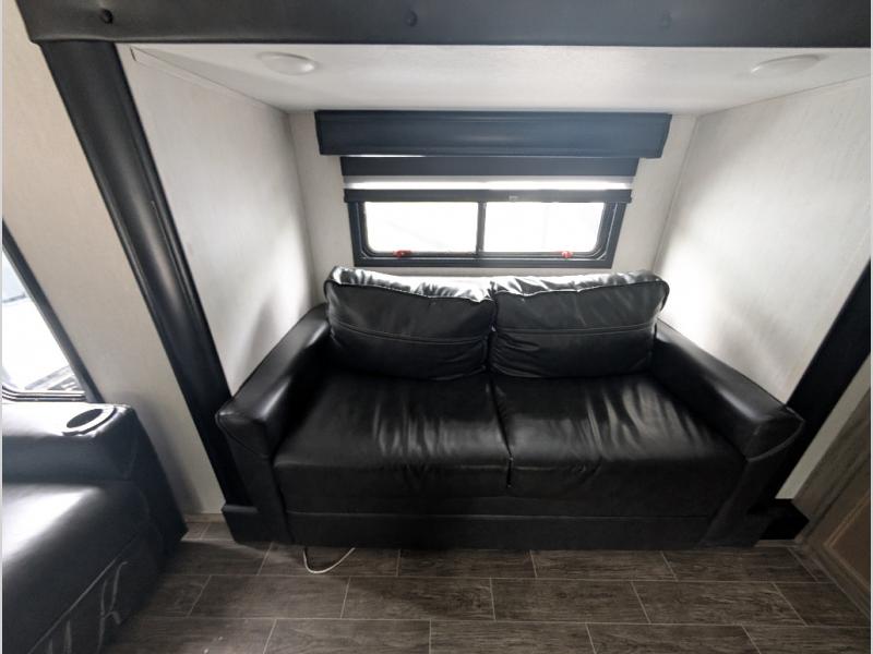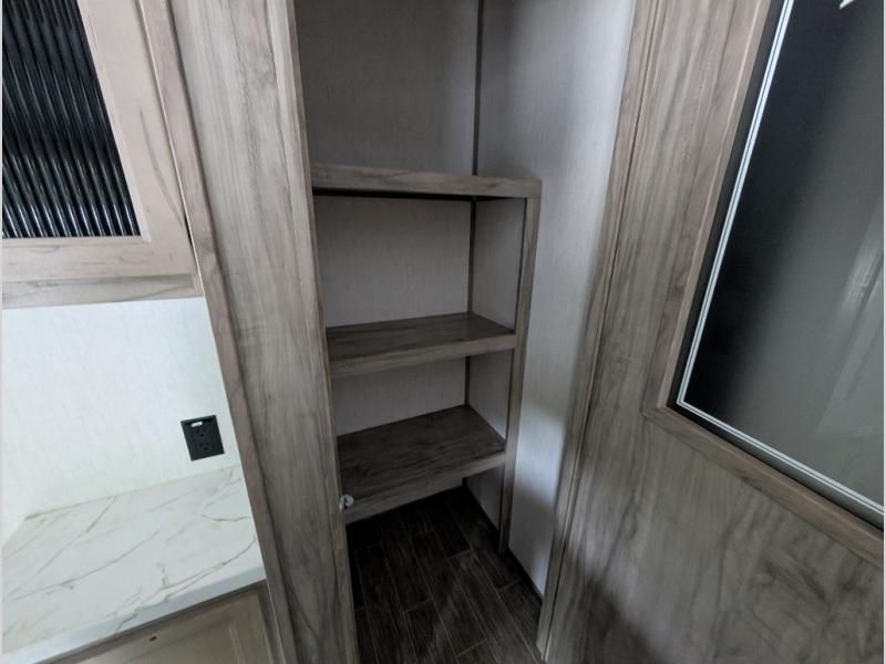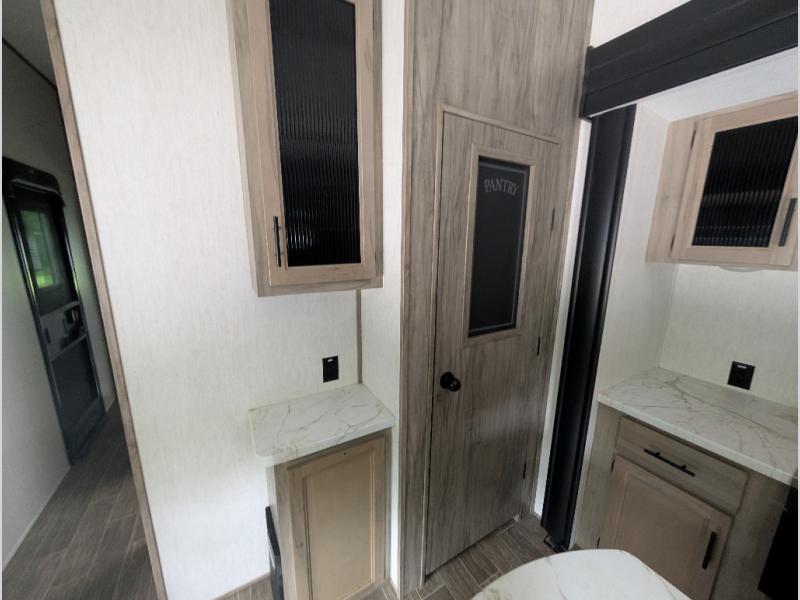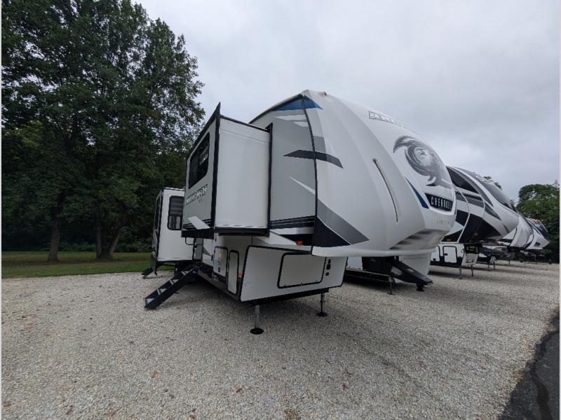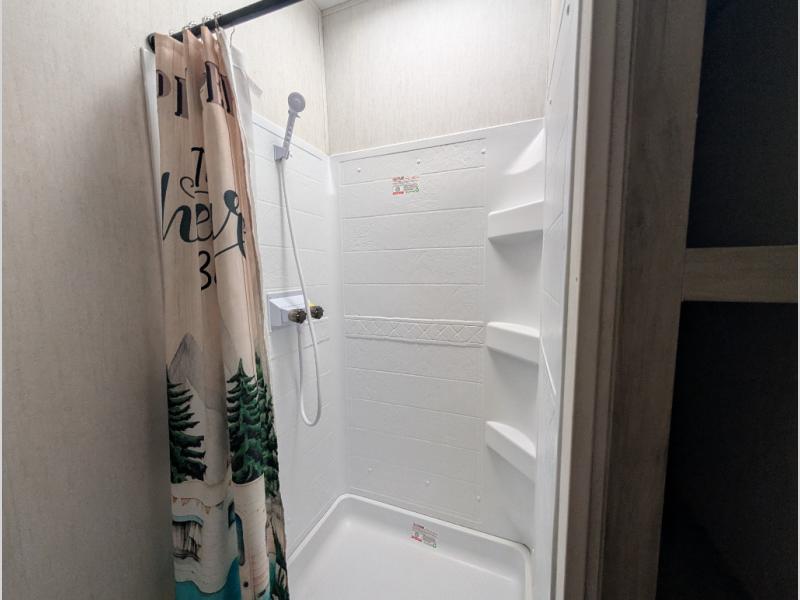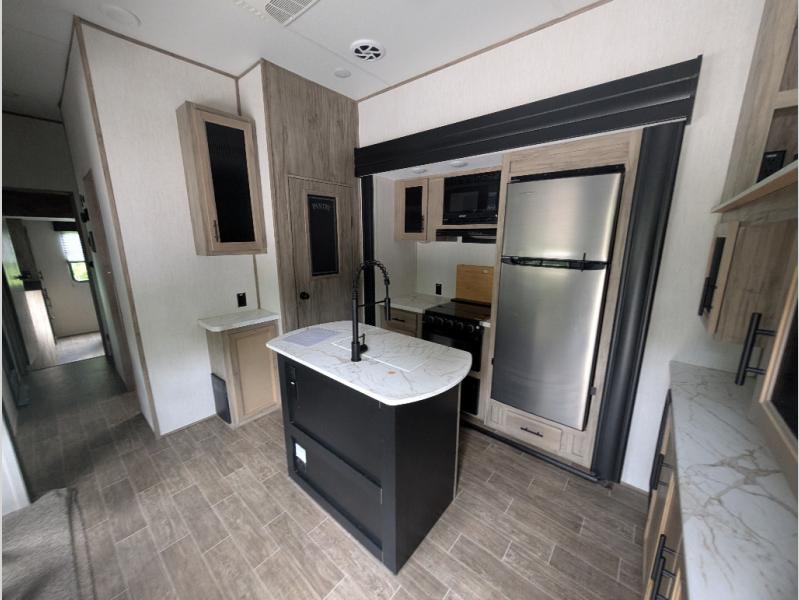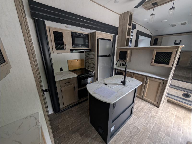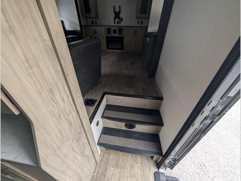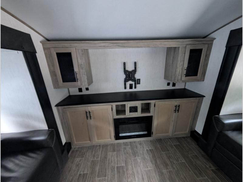 You will have amazing residential comfort in the Forest River Cherokee Arctic Wolf Suite fifth wheels! These units have a “SuperStor” dual-cavern basement storage compartment to allow you to bring more gear, and they have been constructed with a “ToughBend” rigid skirt metal design, a 1x engineered wood “SuperTruss” roof structure with 3/8" decking, and a 5/8” tongue-and-groove plywood floor decking. Each model includes Leash Latch pet safety technology, an outside shower with hot/cold water, preparations for an exterior TV, motion-sensing lighting, and a smart monitor panel with smart phone Bluetooth connectivity. The supersized central air conditioning unit (15,000 BTU) with quick cool air dump feature and second oversized 15,000 BTU ducted air conditioner will cool your unit down in a snap when you camp in the hot summer months.