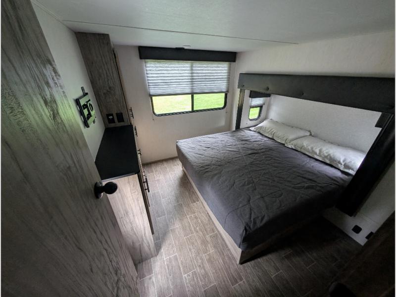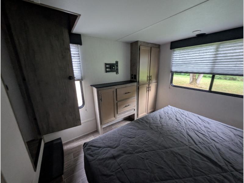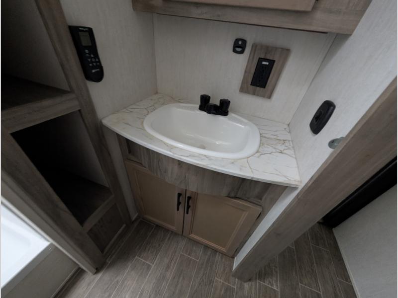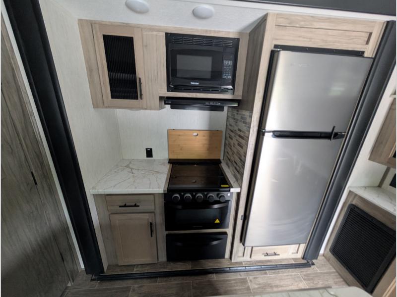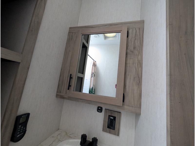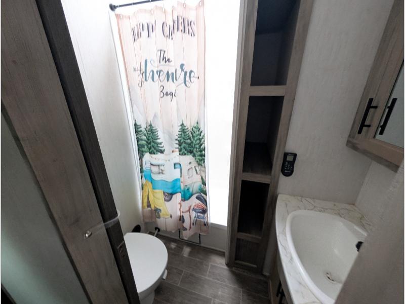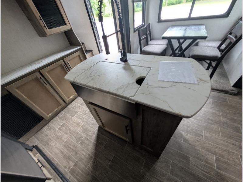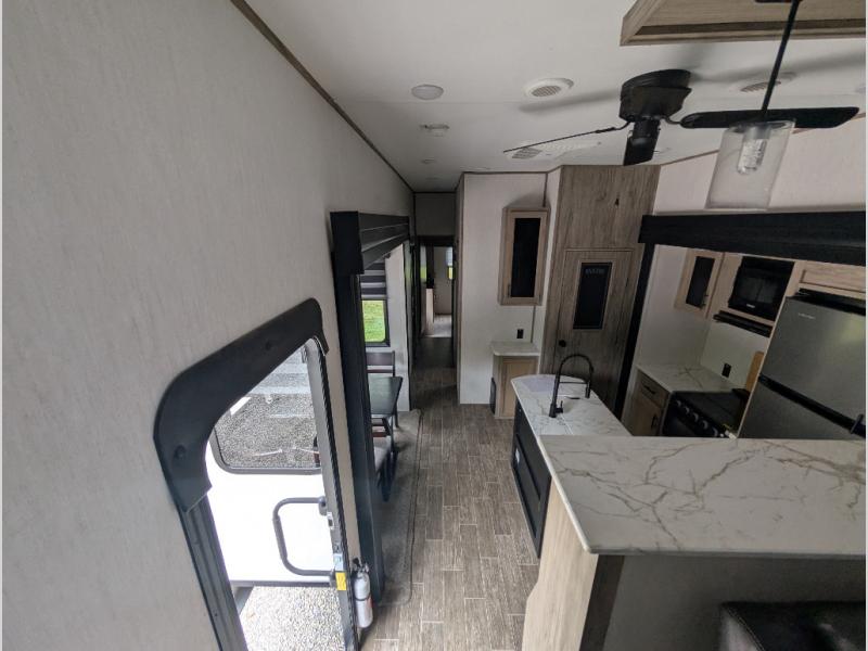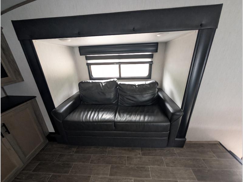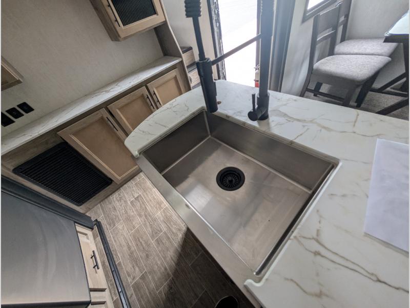 You will have amazing residential comfort in the Forest River Cherokee Arctic Wolf Suite fifth wheels! These units have a “SuperStor” dual-cavern basement storage compartment to allow you to bring more gear, and they have been constructed with a “ToughBend” rigid skirt metal design, a 1x engineered wood “SuperTruss” roof structure with 3/8" decking, and a 5/8” tongue-and-groove plywood floor decking. Each model includes Leash Latch pet safety technology, an outside shower with hot/cold water, preparations for an exterior TV, motion-sensing lighting, and a smart monitor panel with smart phone Bluetooth connectivity. The supersized central air conditioning unit (15,000 BTU) with quick cool air dump feature and second oversized 15,000 BTU ducted air conditioner will cool your unit down in a snap when you camp in the hot summer months.