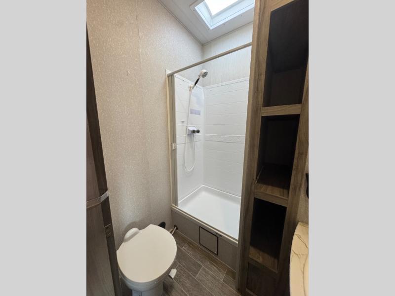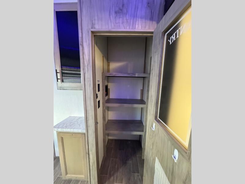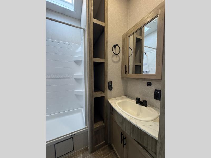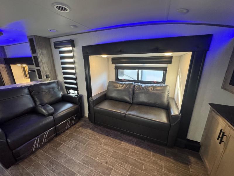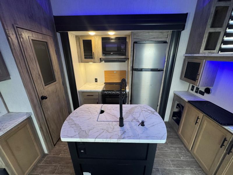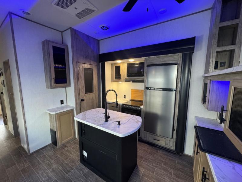 You will have amazing residential comfort in the Forest River Cherokee Arctic Wolf Suite fifth wheels! These units have a “SuperStor” dual-cavern basement storage compartment to allow you to bring more gear, and they have been constructed with a “ToughBend” rigid skirt metal design, a 1x engineered wood “SuperTruss” roof structure with 3/8" decking, and a 5/8” tongue-and-groove plywood floor decking. Each model includes Leash Latch pet safety technology, an outside shower with hot/cold water, preparations for an exterior TV, motion-sensing lighting, and a smart monitor panel with smart phone Bluetooth connectivity. The supersized central air conditioning unit (15,000 BTU) with quick cool air dump feature and second oversized 15,000 BTU ducted air conditioner will cool your unit down in a snap when you camp in the hot summer months.