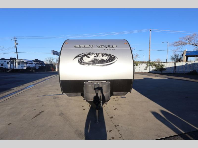 Whether it's a journey that will take you to new locations or a tried-and-true getaway to that favorite and memorable destination, the Forest River Cherokee Grey Wolf travel trailers and toy haulers are going to make the trip worth it every single time! You can travel in confidence with the premium wheel package, seamless roofing membrane with heat reflectivity, Power Gear frame technology with space-saver rail design, and Cherokee back-up camera system. The Cherokee Grey Wolf's interior is highly attractive with its stainless steel kitchen suite package, premium bedding ensemble and comforter, and 8" ceiling-mounted subwoofer with accent lighting. You will also find a black waste tank flush-out kit, an outside shower with hot and cold water, an armored underbelly tank enclosure, a power tongue jack, and an RV grill quick connect.