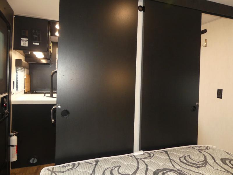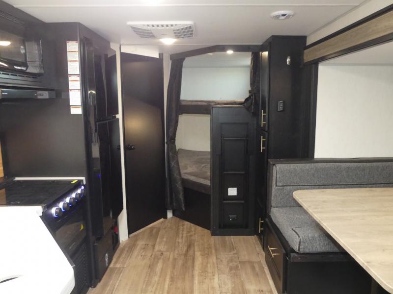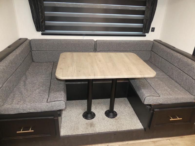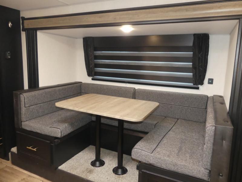 You will love the space provided in this dual entry Cherokee Grey Wolf travel trailer that has double-size bunks! The rear entry door leads right into the full bath allowing easy access from outside when you need to use the bathroom while you're enjoying the great outdoors. The large U-shaped dinette slide will not only seat everyone comfortably for a meal or a game, but since it also slides out, it opens up the interior even more to give you plenty of space for foot traffic. For all of your outdoor gear, you will find the outside storage compartments handy for stowing away your things when not in use. While the kids enjoy their bunk beds, you will enjoy a good night's rest in your queen bed with wardrobes on either side up in the front private bedroom!