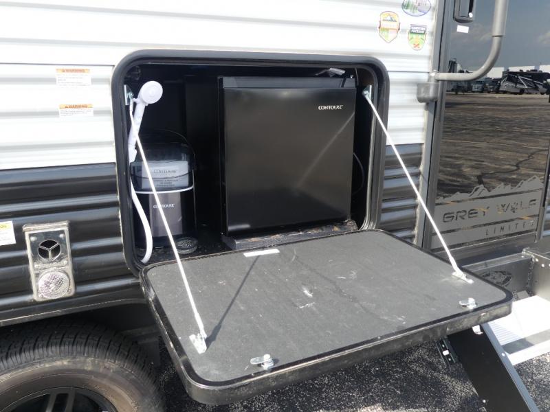 Whether it's a journey that will take you to new locations or a tried-and-true getaway to that favorite and memorable destination, the Forest River Cherokee Grey Wolf travel trailers and toy haulers are going to make the trip worth it every single time! You can travel in confidence with the premium wheel package, seamless roofing membrane with heat reflectivity, Power Gear frame technology with space-saver rail design, and Cherokee back-up camera system. The Cherokee Grey Wolf's interior is highly attractive with its stainless steel kitchen suite package, premium bedding ensemble and comforter, and 8" ceiling-mounted subwoofer with accent lighting. You will also find a black waste tank flush-out kit, an outside shower with hot and cold water, an armored underbelly tank enclosure, a power tongue jack, and an RV grill quick connect.