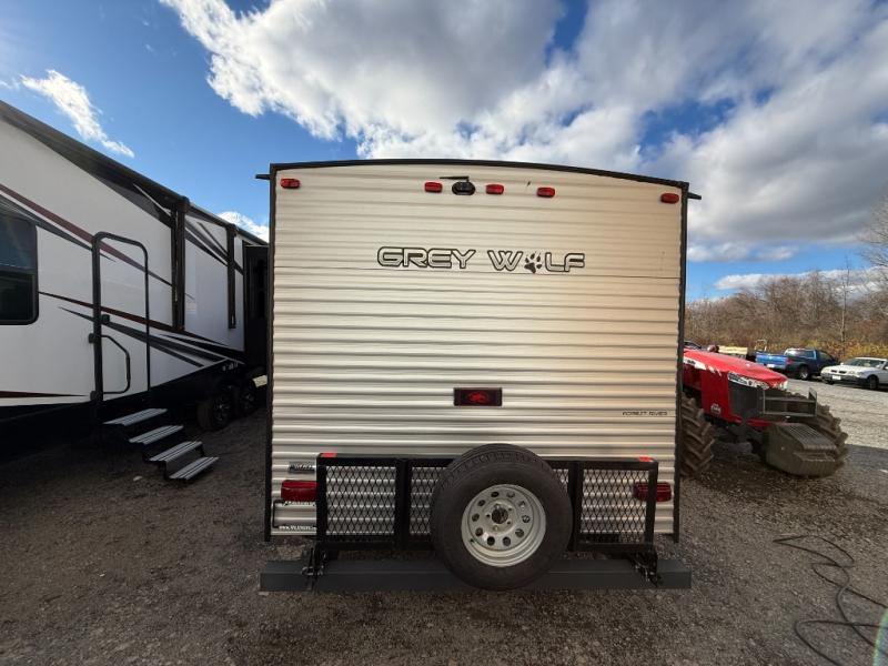 Whether it's a journey that will take you to new locations or a tried-and-true getaway to that favorite and memorable destination, the Forest River Cherokee Grey Wolf travel trailers and toy haulers are going to make the trip worth it every single time! You can travel in confidence with the premium wheel package, seamless roofing membrane with heat reflectivity, Power Gear frame technology with space-saver rail design, and Cherokee back-up camera system. The Cherokee Grey Wolf's interior is highly attractive with its stainless steel kitchen suite package, premium bedding ensemble and comforter, and 8" ceiling-mounted subwoofer with accent lighting. You will also find a black waste tank flush-out kit, an outside shower with hot and cold water, an armored underbelly tank enclosure, a power tongue jack, and an RV grill quick connect.