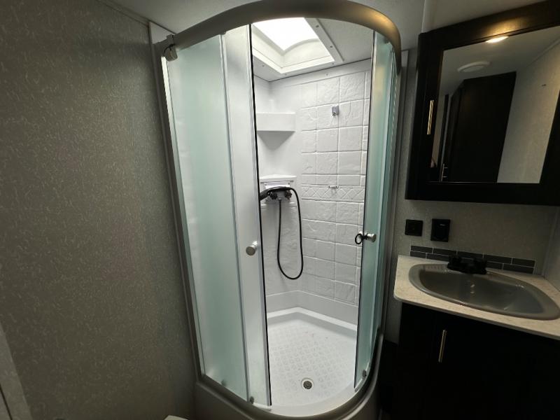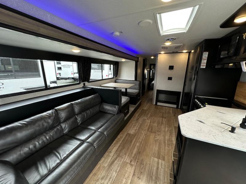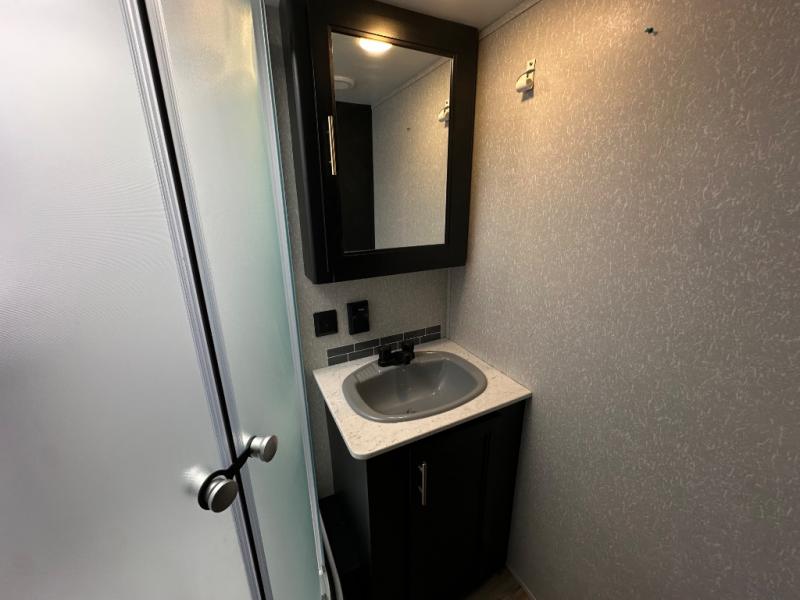 Whether it's a journey that will take you to new locations or a tried-and-true getaway to that favorite and memorable destination, the Forest River Cherokee Grey Wolf travel trailers and toy haulers are going to make the trip worth it every single time! You can travel in confidence with the premium wheel package, seamless roofing membrane with heat reflectivity, Power Gear frame technology with space-saver rail design, and Cherokee back-up camera system. The Cherokee Grey Wolf's interior is highly attractive with its stainless steel kitchen suite package, premium bedding ensemble and comforter, and 8" ceiling-mounted subwoofer with accent lighting. You will also find a black waste tank flush-out kit, an outside shower with hot and cold water, an armored underbelly tank enclosure, a power tongue jack, and an RV grill quick connect.