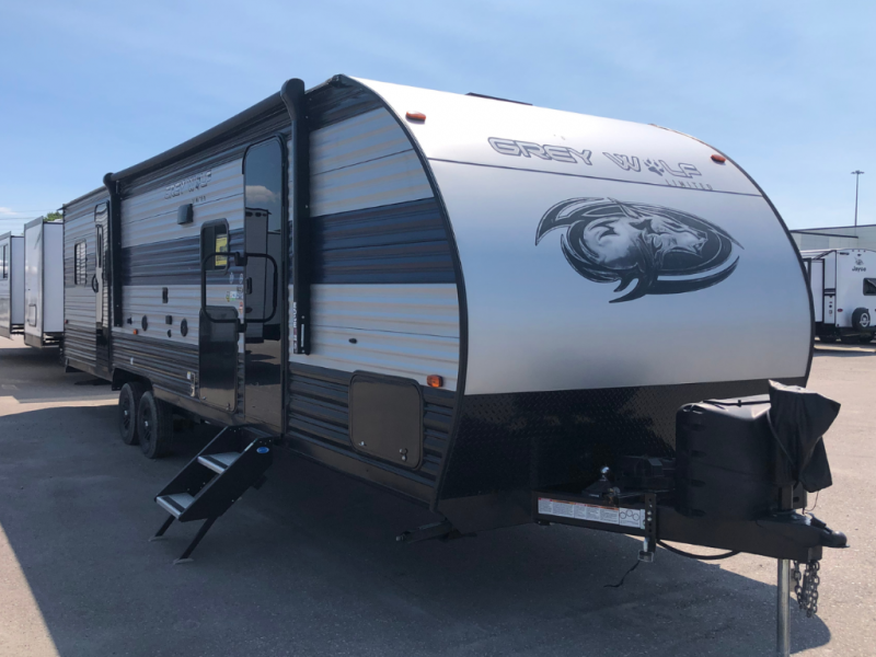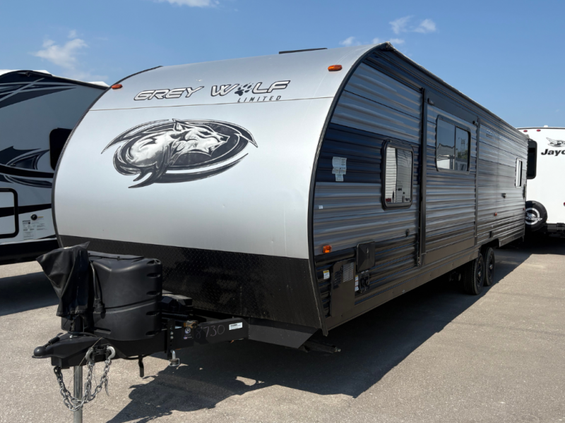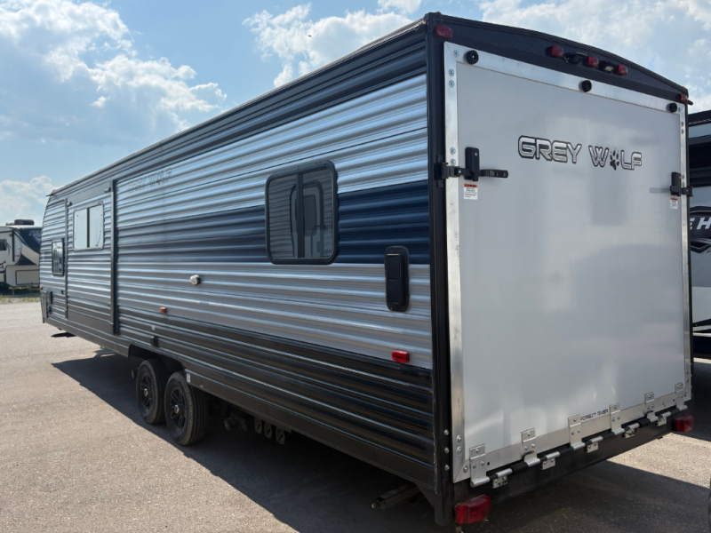 Whether it's a journey that will take you to new locations or a tried-and-true getaway to that favorite and memorable destination, the Forest River Cherokee Grey Wolf travel trailers and toy haulers are going to make the trip worth it every single time! You can travel in confidence with the premium wheel package, seamless roofing membrane with heat reflectivity, Power Gear frame technology with space-saver rail design, and Cherokee back-up camera system. The Cherokee Grey Wolf's interior is highly attractive with its stainless steel kitchen suite package, premium bedding ensemble and comforter, and 8" ceiling-mounted subwoofer with accent lighting. You will also find a black waste tank flush-out kit, an outside shower with hot and cold water, an armored underbelly tank enclosure, a power tongue jack, and an RV grill quick connect.