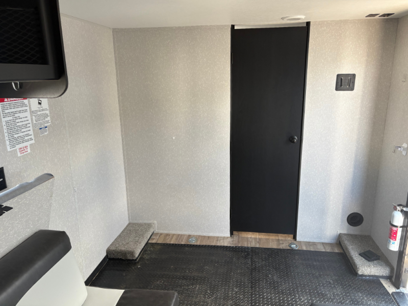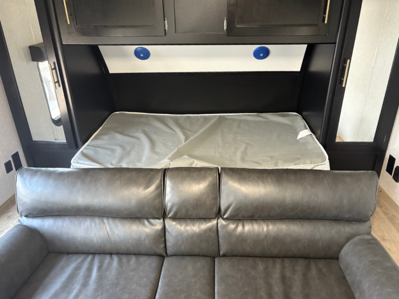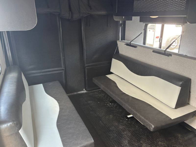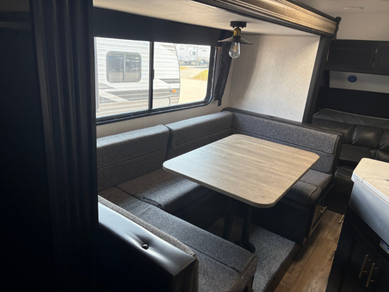 This Cherokee Grey Wolf toy hauler is perfect for those who are concerned about keeping the fuel smells and grime from entering the main living area. In this unit you can enjoy the separation with a door and the walk-though bath. In the cargo area, you will have plenty of space for hauling all of your favorite toys. This area also features dual fold-down sofas with a dinette table that is great for your thrill seekers to come in for a break from riding. It also allows quick access into the bathroom without having to wander through the entire main living area where you are likely to leave a trail behind. After a full day of playing hard, you can get cleaned up and head into the main kitchen area where you will enjoy a U-shaped dinette. A full kitchen allows you to refuel your body, and there is also a Cherokee Sleep System up front for a great night's sleep.