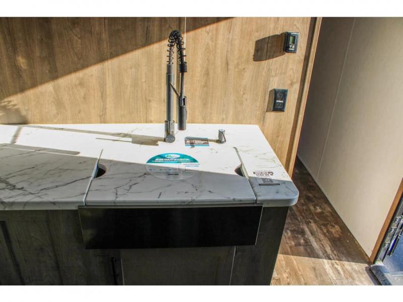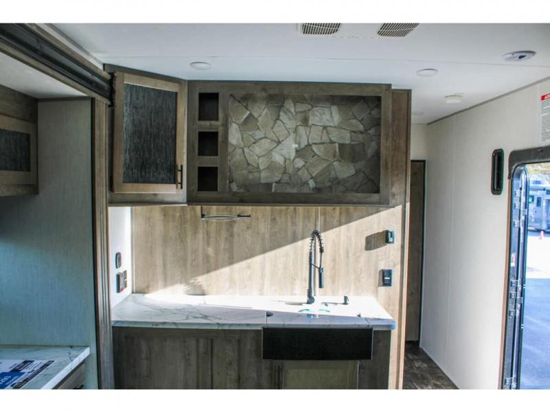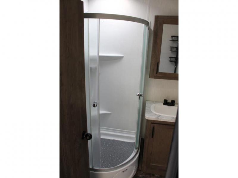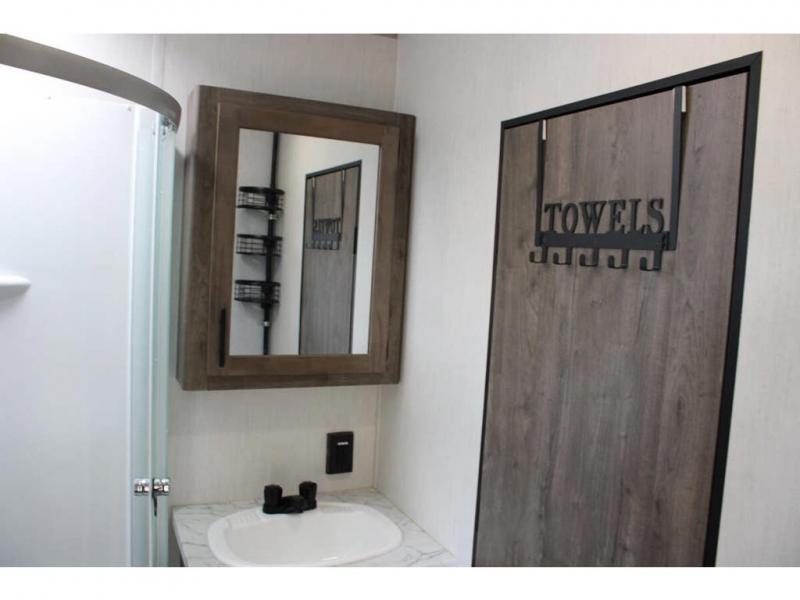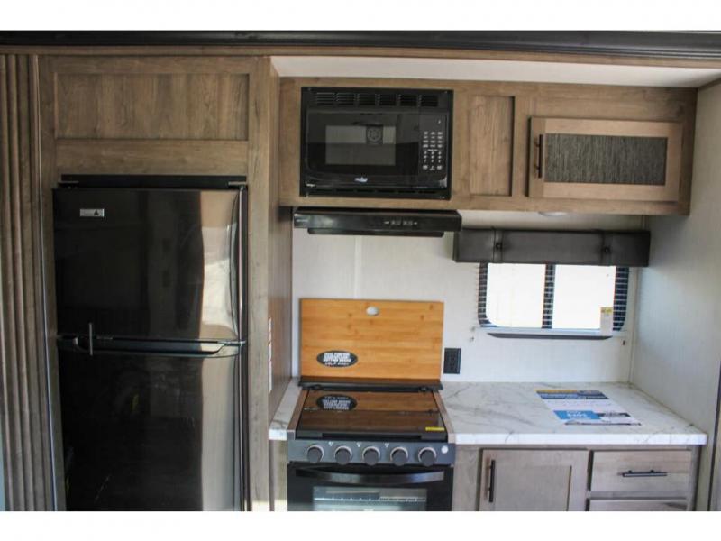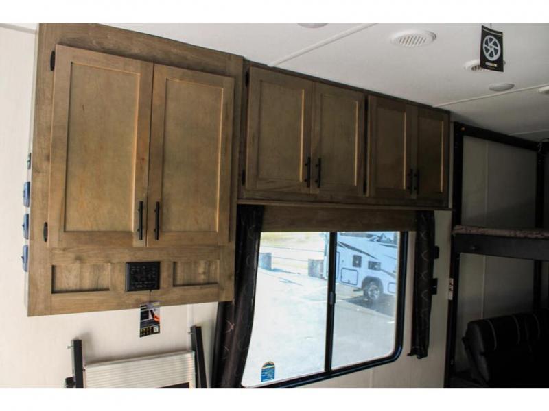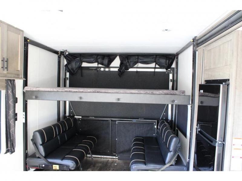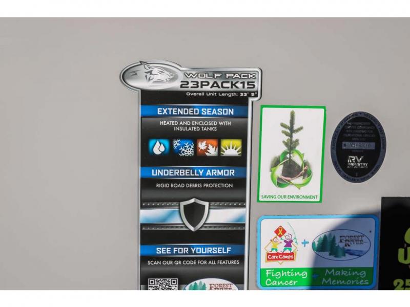 This toy hauler is ready to take you on your greatest adventures! With a 15' garage area, a 84" x 96" ramp door "party patio", and a reverse activated light and backup camera, you can easily load and unload your toys. The exterior 30 gallon fuel station will keep your toys fueled and the three burner cooktop and 10 cu. ft. refrigerator will keep your family fueled. Everyone can freshen up in the dual entry bathroom with the radius shower then play a few card games at the folding dinette table while also enjoying the entertainment center across from it. The front private bedroom welcomes you to lay your head on the 67" x 74" Wolf Pack king bed for a good night's rest!