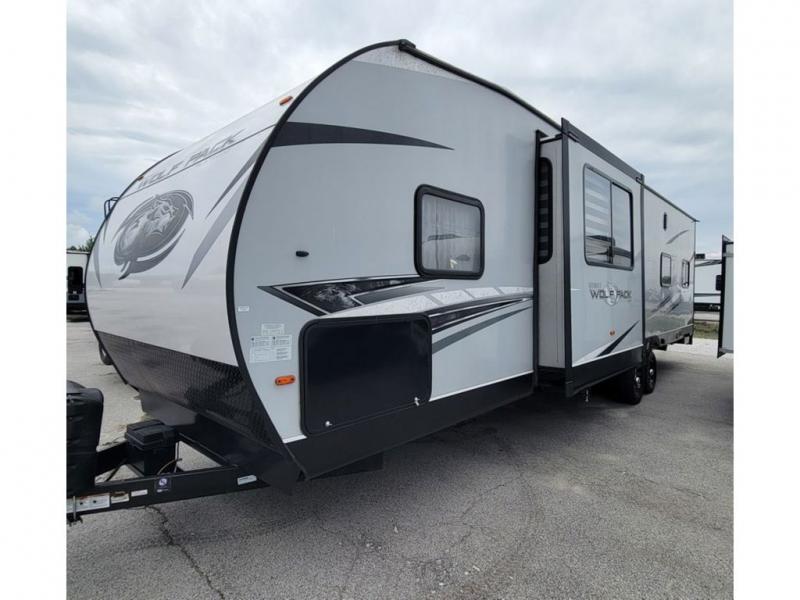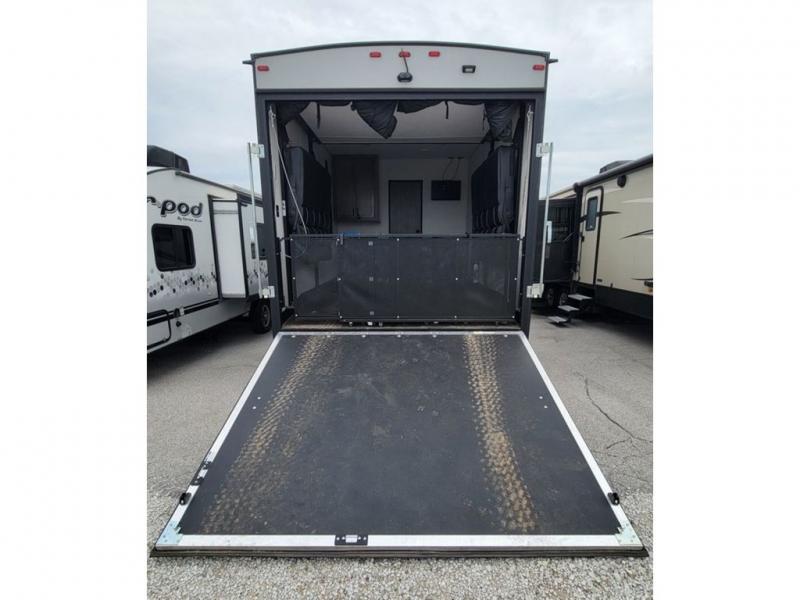Run with the pack in any one of these Forest River Cherokee Wolf Pack toy haulers! They are affordable and versatile with a 102" widebody design to pack in all of the necessary features for a great adventure with your family and toys. The grey high gloss gel exterior will turn heads on the highway and the LED interior/exterior lights will make life easier. An outside shower with hot and cold water helps to keep the mud outside where it belongs. With an external 30 gallon fuel station, you won't have to worry about your toys being low on fuel. The Platinum package adds extra conveniences like a ramp door patio deck railing system, a Happijac bed lift system, and an industrial rubber garage floor on enclosed garage models. Come find the perfect model for you today!