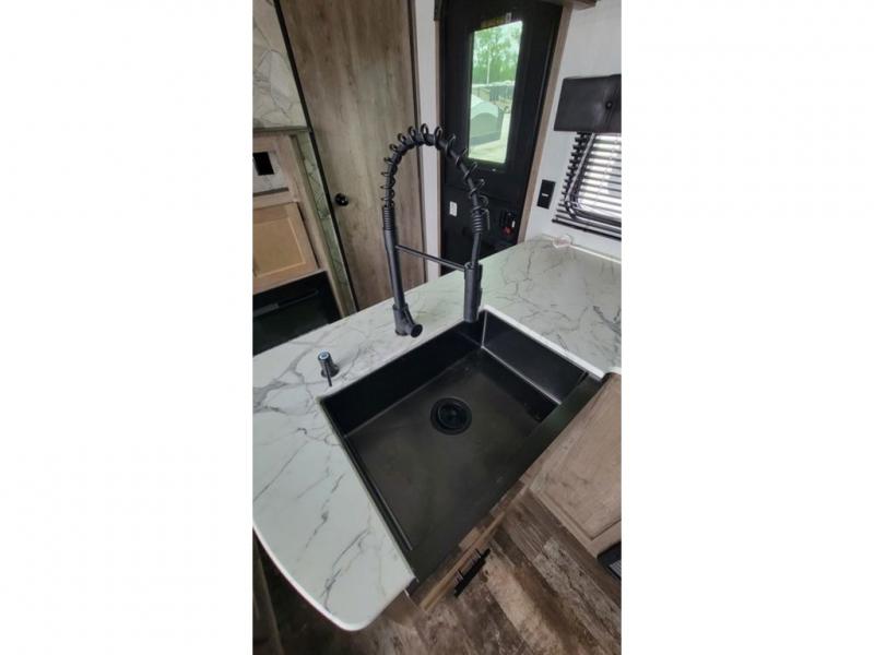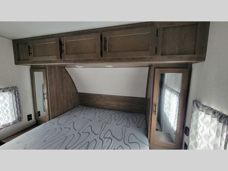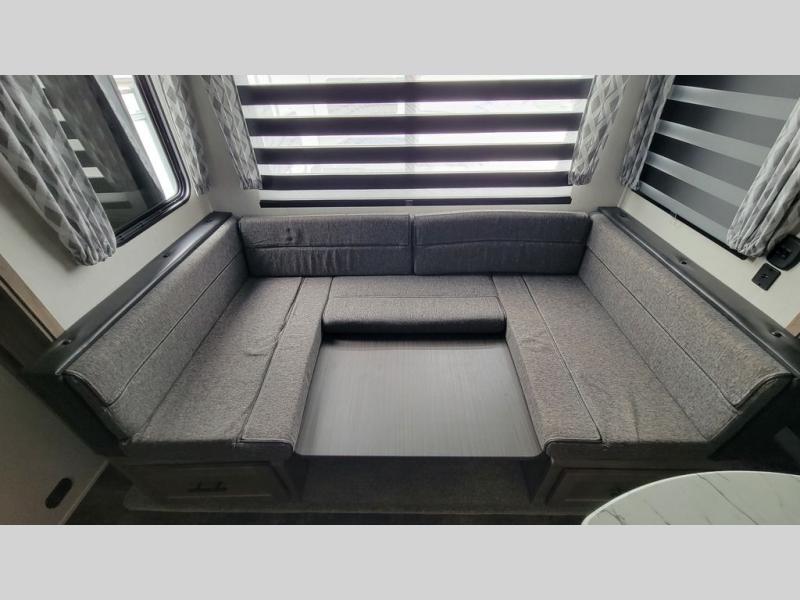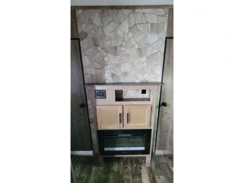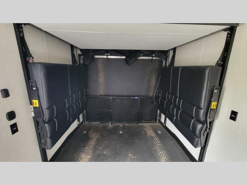 You are going to want this toy hauler for all of your adventures! It features a 12' garage area that has a folding dinette table with a Happijac bed lift system above it and one of the dual entry doors to the unit. The walk-through bathroom leads directly into the kitchen/living area. Here you will find a three burner cooktop to prepare your best meals, a U-shaped dinette to enjoy them at or you can switch it out for the optional party recliner sofa, and an entertainment center with a fireplace for a cozy evening indoors. Enjoy a good night's rest each night on the 67" x 74" Wolf Pack king bed with wardrobes on either side in the front private bedroom!