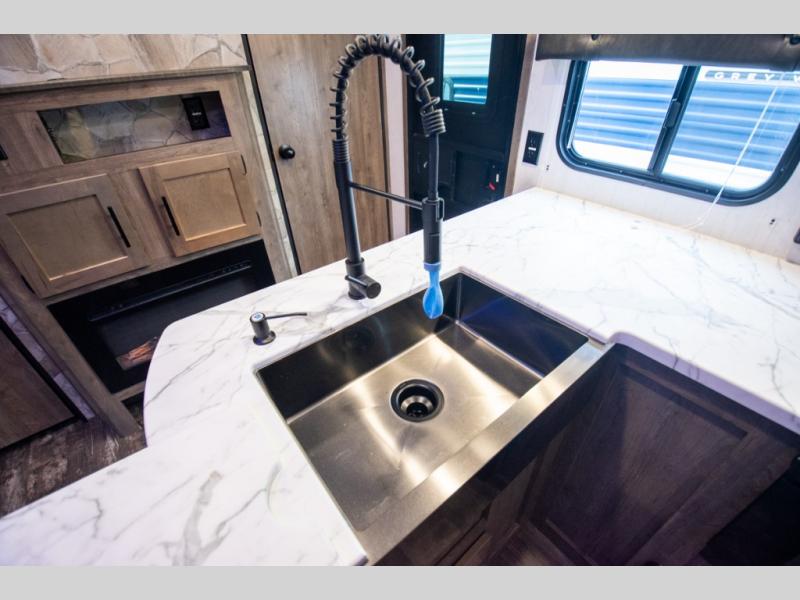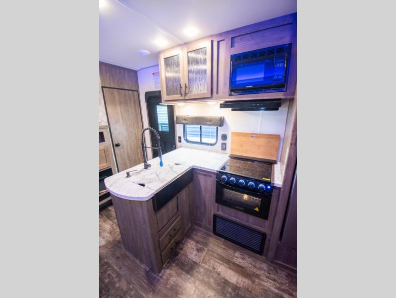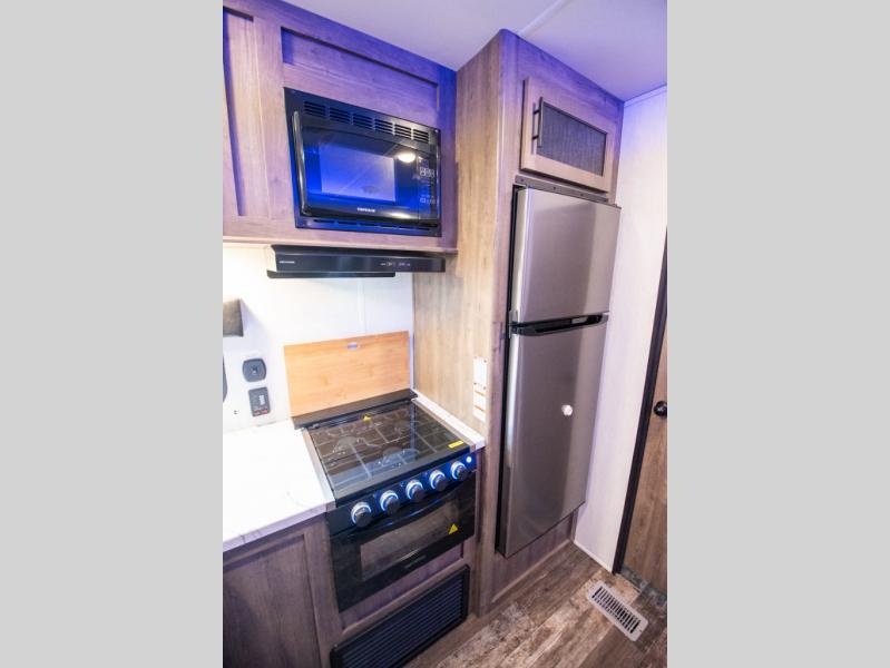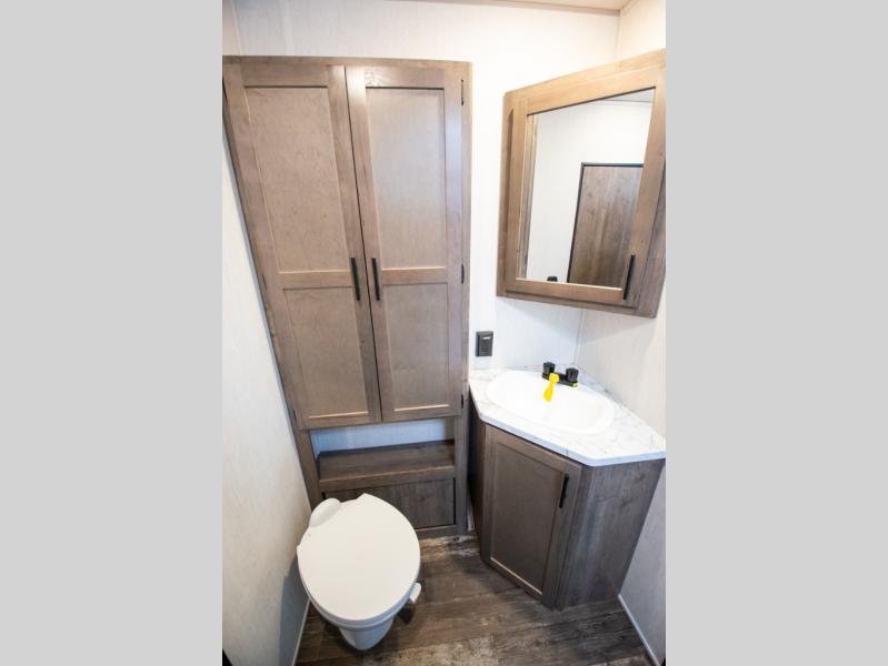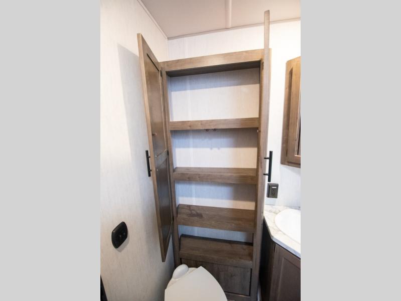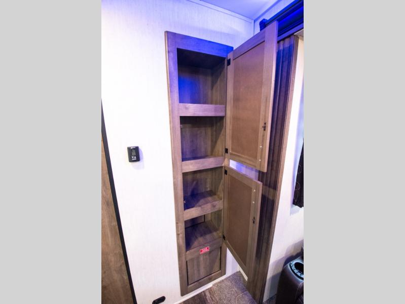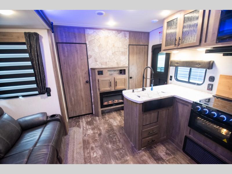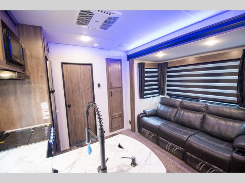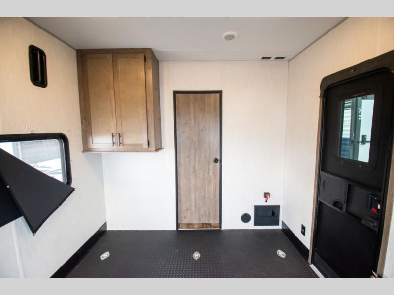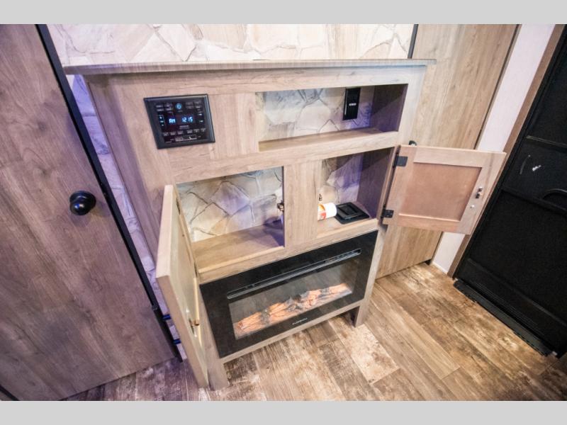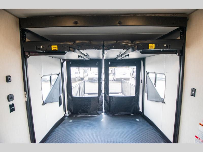You are going to want this toy hauler for all of your adventures! It features a 12' garage area that has a folding dinette table with a Happijac bed lift system above it and one of the dual entry doors to the unit. The walk-through bathroom leads directly into the kitchen/living area. Here you will find a three burner cooktop to prepare your best meals, a U-shaped dinette to enjoy them at or you can switch it out for the optional party recliner sofa, and an entertainment center with a fireplace for a cozy evening indoors. Enjoy a good night's rest each night on the 67" x 74" Wolf Pack king bed with wardrobes on either side in the front private bedroom!