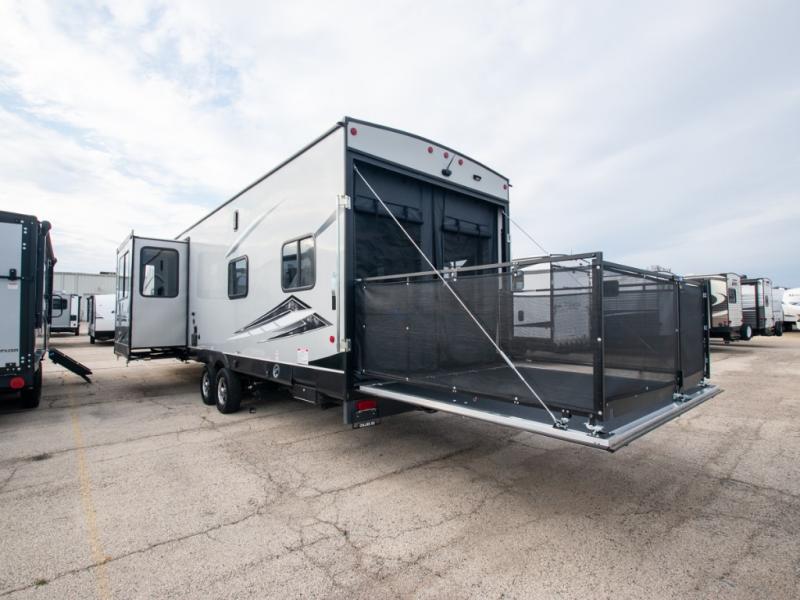 Run with the pack in any one of these Forest River Cherokee Wolf Pack toy haulers! They are affordable and versatile with a 102" widebody design to pack in all of the necessary features for a great adventure with your family and toys. The grey high gloss gel exterior will turn heads on the highway and the LED interior/exterior lights will make life easier. An outside shower with hot and cold water helps to keep the mud outside where it belongs. With an external 30 gallon fuel station, you won't have to worry about your toys being low on fuel. The Platinum package adds extra conveniences like a ramp door patio deck railing system, a Happijac bed lift system, and an industrial rubber garage floor on enclosed garage models. Come find the perfect model for you today!