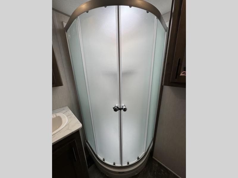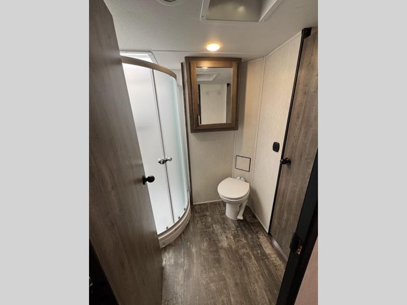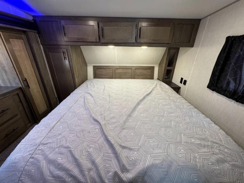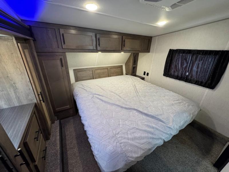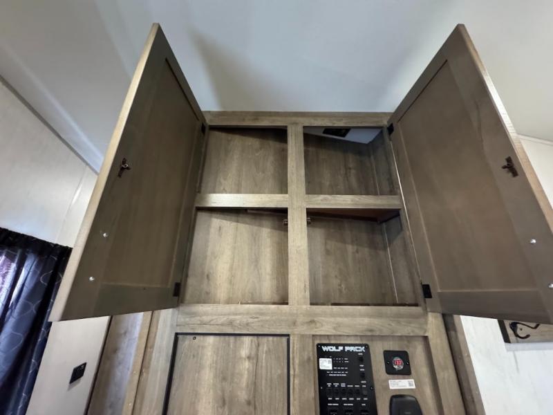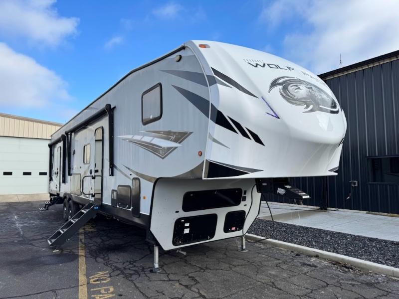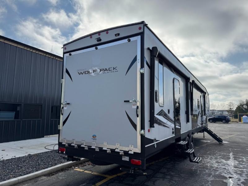 Run with the pack in any one of these Forest River Cherokee Wolf Pack toy haulers! They are affordable and versatile with a 102" widebody design to pack in all of the necessary features for a great adventure with your family and toys. The grey high gloss gel exterior will turn heads on the highway and the LED interior/exterior lights will make life easier. An outside shower with hot and cold water helps to keep the mud outside where it belongs. With an external 30 gallon fuel station, you won't have to worry about your toys being low on fuel. The Platinum package adds extra conveniences like a ramp door patio deck railing system, a Happijac bed lift system, and an industrial rubber garage floor on enclosed garage models. Come find the perfect model for you today!