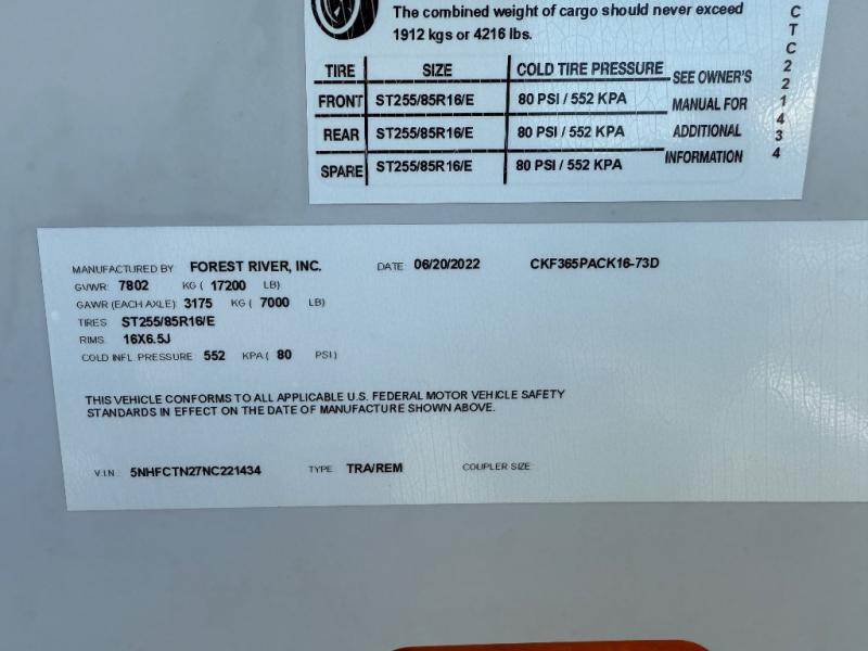 Used 2022 Forest River RV Cherokee Wolf Pack 365PACK16 Toy Hauler Fifth Wheel