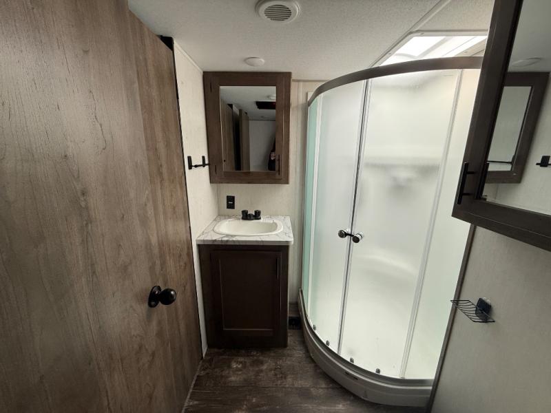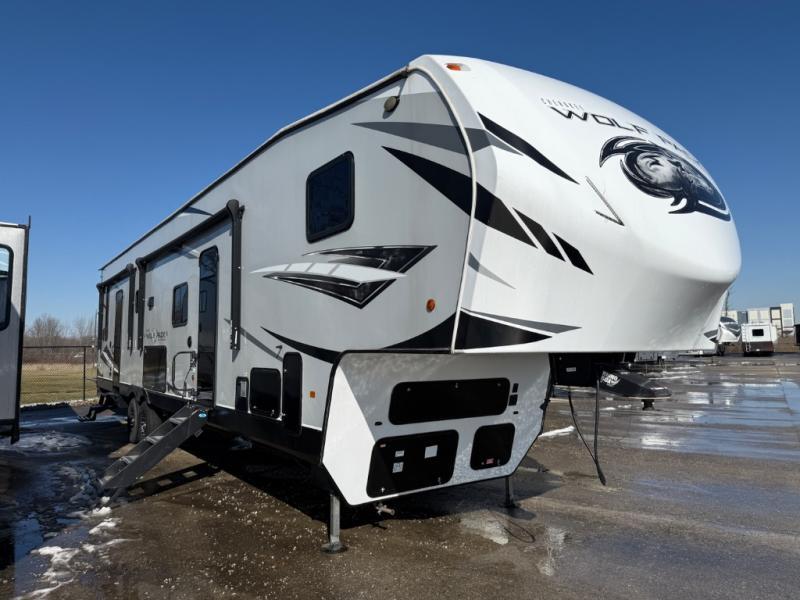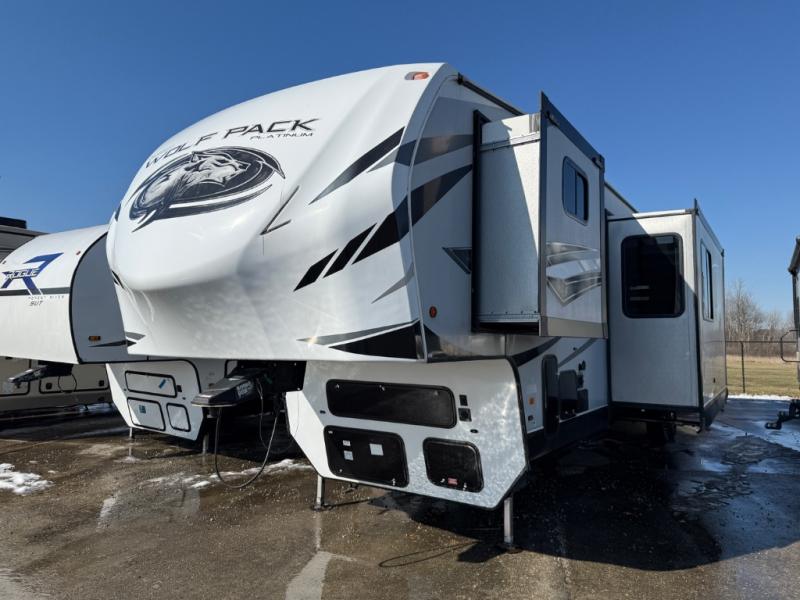 Run with the pack in any one of these Forest River Cherokee Wolf Pack toy haulers! They are affordable and versatile with a 102" widebody design to pack in all of the necessary features for a great adventure with your family and toys. The grey high gloss gel exterior will turn heads on the highway and the LED interior/exterior lights will make life easier. An outside shower with hot and cold water helps to keep the mud outside where it belongs. With an external 30 gallon fuel station, you won't have to worry about your toys being low on fuel. The Platinum package adds extra conveniences like a ramp door patio deck railing system, a Happijac bed lift system, and an industrial rubber garage floor on enclosed garage models. Come find the perfect model for you today!