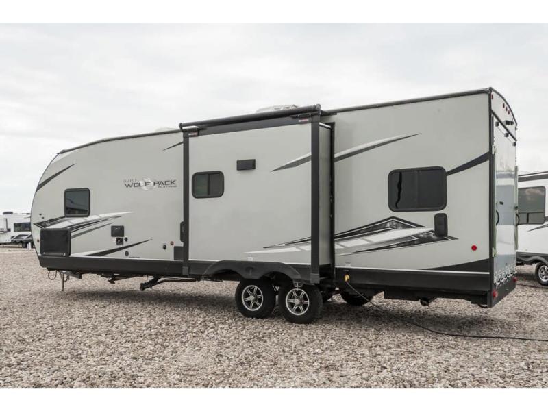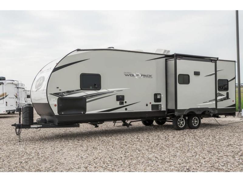 Used Forest River Travel Trailer for sale – 2022 Forest River Wolf Pack is approximately 34’ 0” feet in length, 1 slide, and features LCI stabilizers, aluminum wheels, patio awning, LED running lights, black tank flush, exterior shower, solar, leather seating, 7 foot ceiling, dual pane windows, 3 burner gas range with oven and much more. For more details on this unit, our full inventory, brochures, window stickers, videos, photos, and customer reviews, visit MHSRV.com or call 800-335-6054 for the Texas location or 334-288-0331 for our Alabama location. At Motor Home Specialist, we DO NOT charge any prep or orientation fees like you will find at other dealerships. Read Thousands upon Thousands of 5-Star Reviews at MHSRV.com and See What They Had to Say About Their Experience at Motor Home Specialist. WHY PAY MORE? WHY SETTLE FOR LESS?