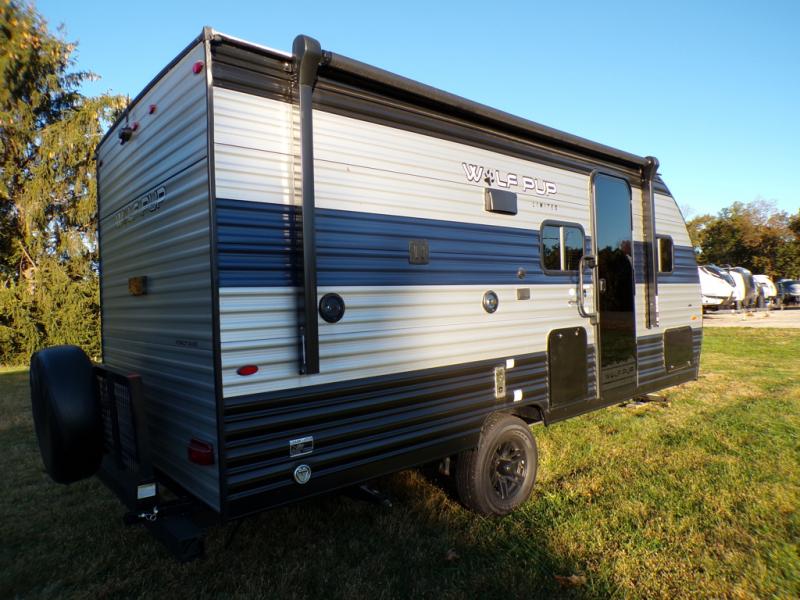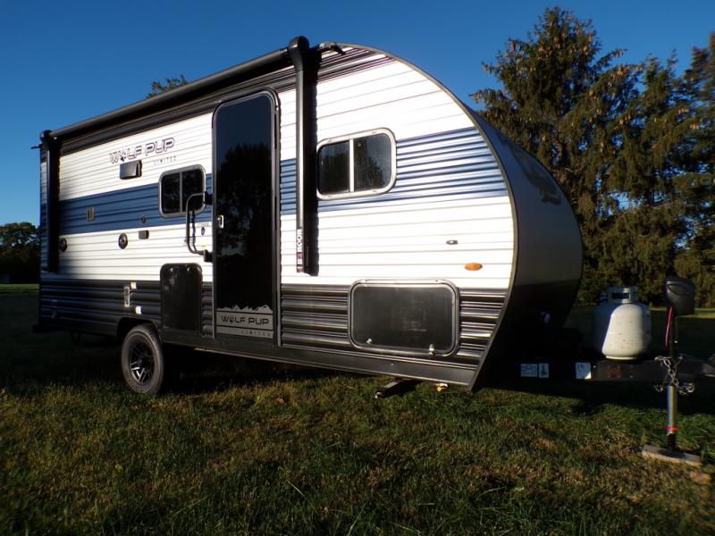 Each one of these Forest River Cherokee Wolf Pup travel trailers and toy haulers are lightweight and easy to tow! They are fully self contained with ample tank capacities, an abundance of storage space, and filled with at home amenities. The aerodynamic smooth radius front profile, the Power Gear frame technology, and the space saver rail design make them easier to maneuver. You will also appreciate the seamless roofing membrane with heat reflectivity to keep the sun from making your unit a hot box. The tongue and groove plywood flooring will hold up for years of fun and the USB charging stations help to keep your electronics at 100% while you're away. Come find the best model for you today!