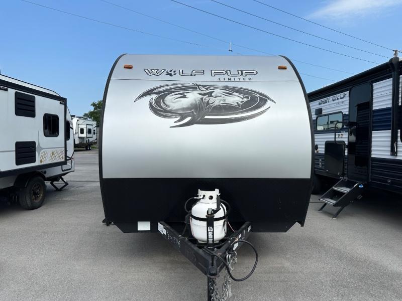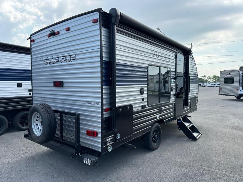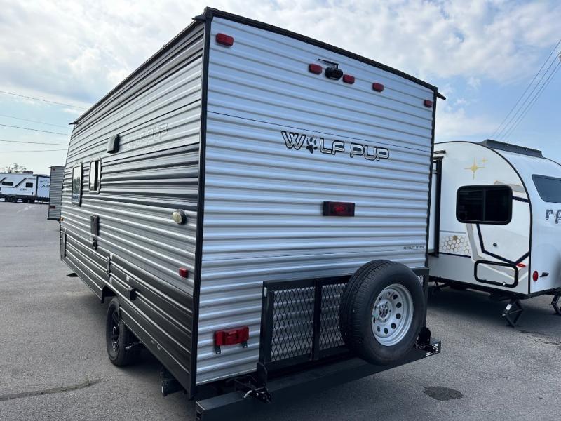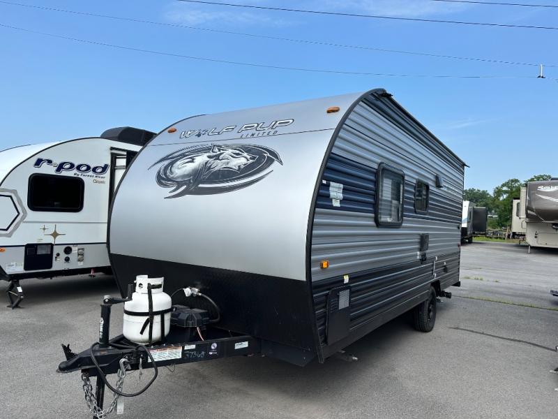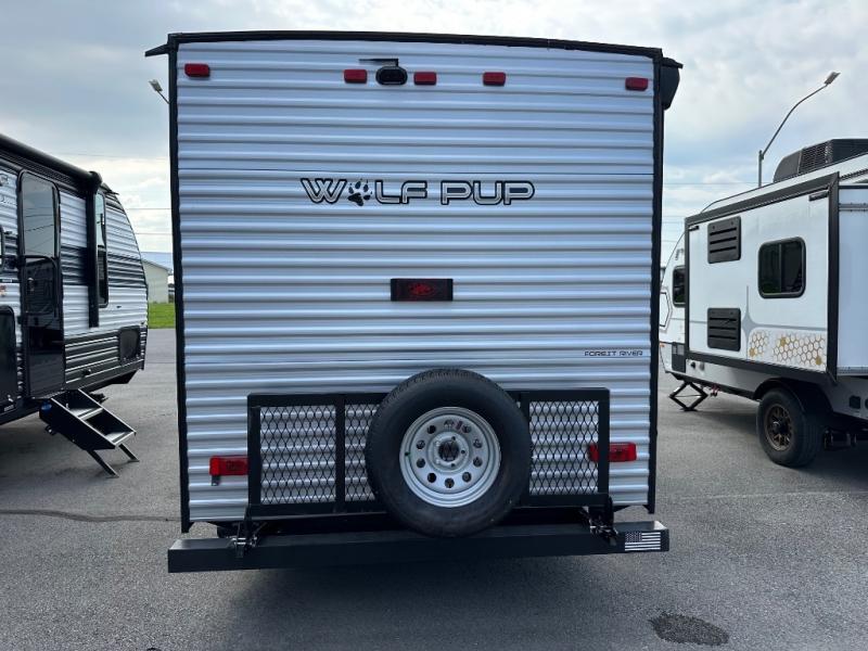 Each one of these Forest River Cherokee Wolf Pup travel trailers and toy haulers are lightweight and easy to tow! They are fully self contained with ample tank capacities, an abundance of storage space, and filled with at home amenities. The aerodynamic smooth radius front profile, the Power Gear frame technology, and the space saver rail design make them easier to maneuver. You will also appreciate the seamless roofing membrane with heat reflectivity to keep the sun from making your unit a hot box. The tongue and groove plywood flooring will hold up for years of fun and the USB charging stations help to keep your electronics at 100% while you're away. Come find the best model for you today!