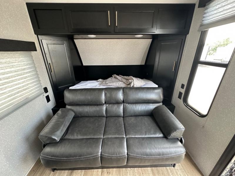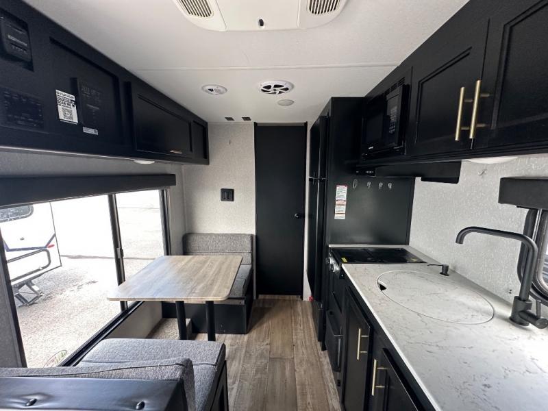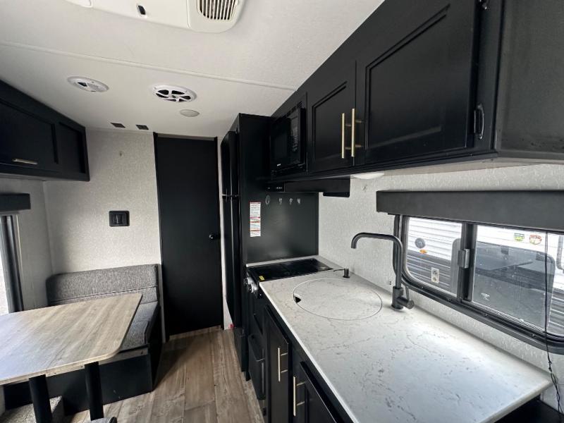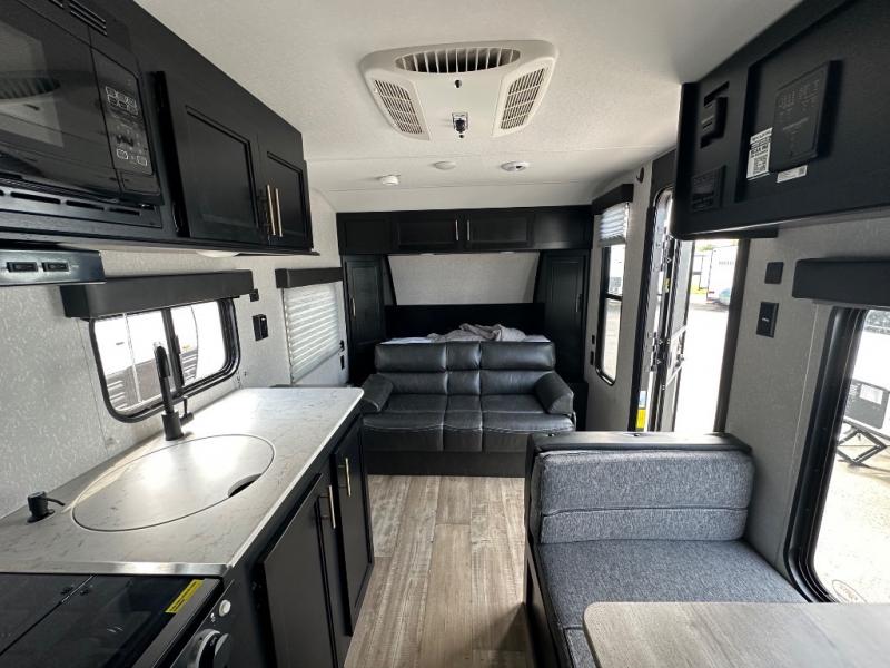 You will experience versatile living in this travel trailer with the Cherokee Sleep System! It lets you easily convert the front queen bed into a comfortable sofa to sit on during the day. Freshen up each morning in the full rear bathroom with the tub/shower and large sink with cabinet storage below it and mirror above it. Fill your bellies with the perishables stored in the 11 cu. ft. Cannon high efficiency refrigerator and cook them on the high output cooktop then enjoy them at the booth dinette. You could even prepare a meal while breathing in some fresh air at the outside mini kitchen while staying protected by the 12' power awning. Easily store all of your outdoor gear in the outside storage area too!