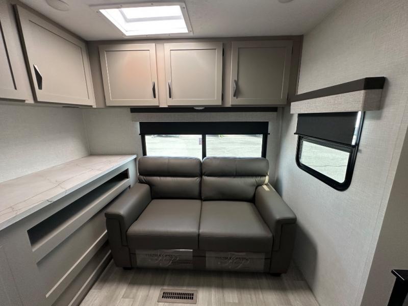 What I liked most: The cabinets are deep which allows for more storage, we all know how important that is. The bed area is open and has plenty of arms reach counter space and overhead storage. The bathroom seems to be a good size. Ceiling speaker system is a nice touch.