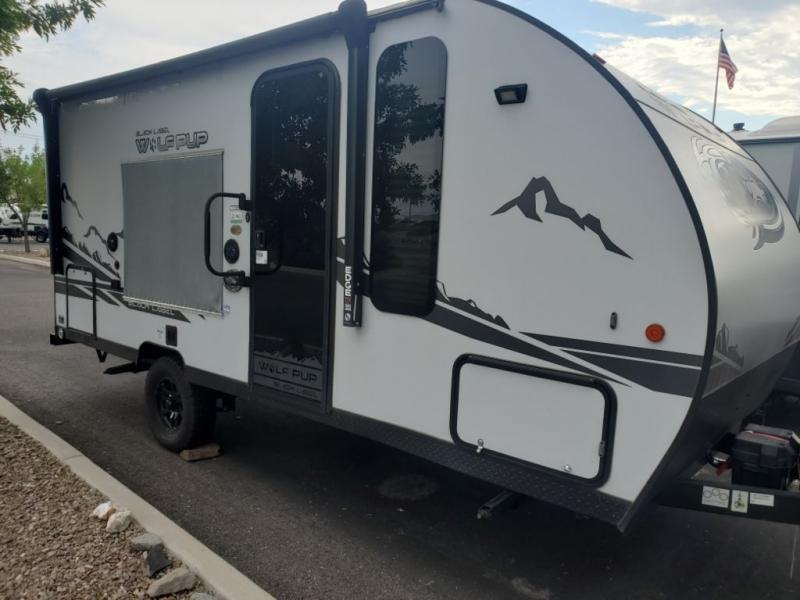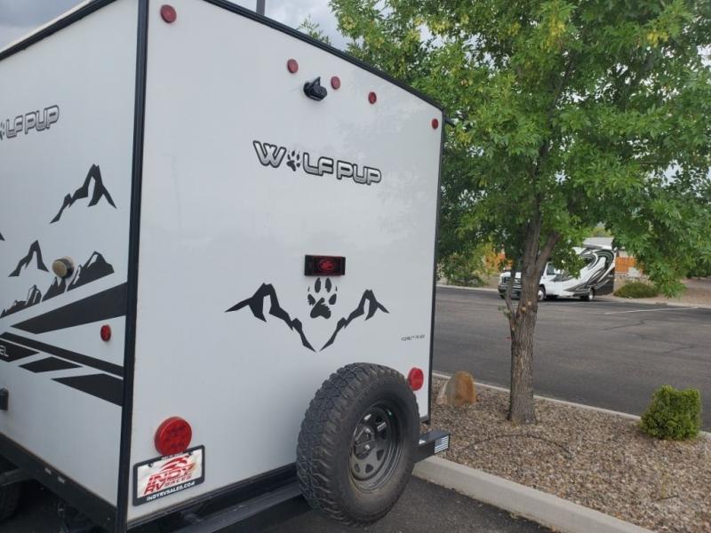 Each one of these Forest River Cherokee Wolf Pup travel trailers and toy haulers are lightweight and easy to tow! They are fully self contained with ample tank capacities, an abundance of storage space, and filled with at home amenities. The aerodynamic smooth radius front profile, the Power Gear frame technology, and the space saver rail design make them easier to maneuver. You will also appreciate the seamless roofing membrane with heat reflectivity to keep the sun from making your unit a hot box. The tongue and groove plywood flooring will hold up for years of fun and the USB charging stations help to keep your electronics at 100% while you're away. Come find the best model for you today!