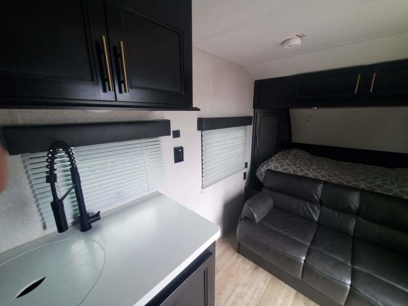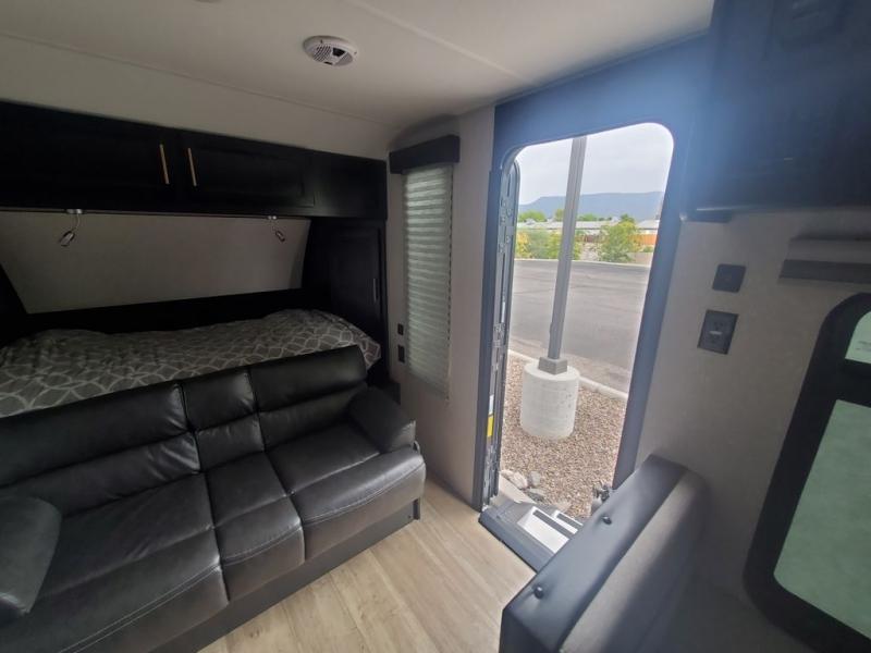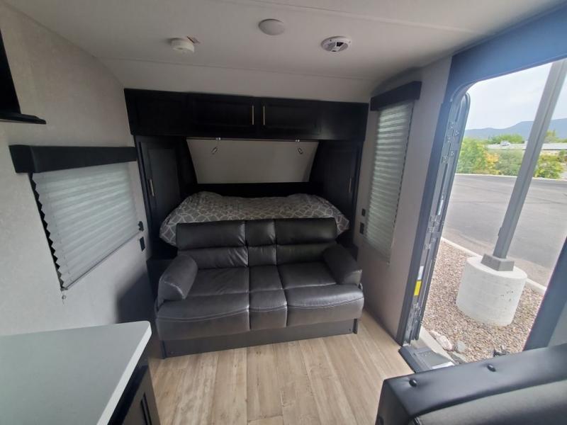 You will experience versatile living in this travel trailer with the Cherokee Sleep System! It lets you easily convert the front queen bed into a comfortable sofa to sit on during the day. Freshen up each morning in the full rear bathroom with the tub/shower and large sink with cabinet storage below it and mirror above it. Fill your bellies with the perishables stored in the 11 cu. ft. Cannon high efficiency refrigerator and cook them on the high output cooktop then enjoy them at the booth dinette. You could even prepare a meal while breathing in some fresh air at the outside mini kitchen while staying protected by the 12' power awning. Easily store all of your outdoor gear in the outside storage area too!