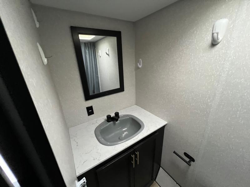 What I liked most: The cabinets are deep which allows for more storage, we all know how important that is. The bed area is open and has plenty of arms reach counter space and overhead storage. The bathroom seems to be a good size. Ceiling speaker system is a nice touch.