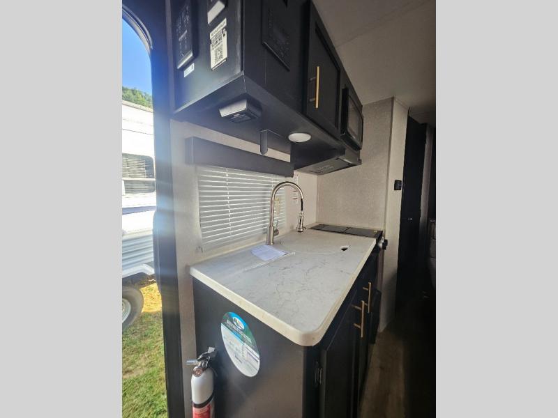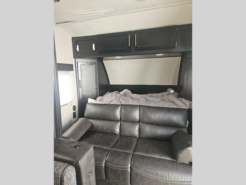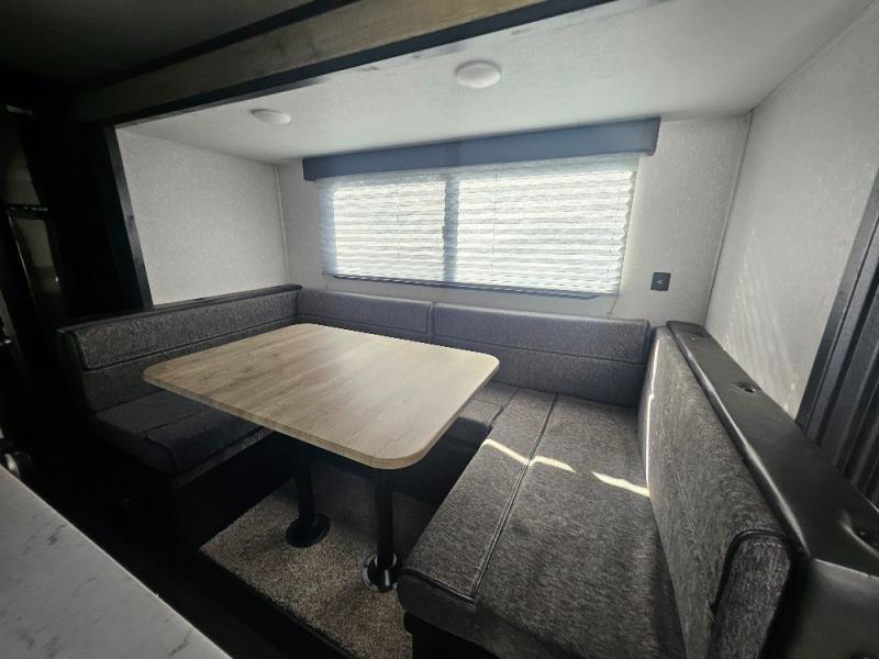 The chef will love cooking in this travel trailer! They have the option to cook either indoors with the high output cooktop and 11 cu. ft. Cannon high efficiency refrigerator or at the outside mini kitchen to breathe in some fresh air while they cook. Enjoy all of your meals at the U-shaped dinette slide and even transform it into an extra sleeping space if needed. You will also appreciate the versatility of the Cherokee Sleep System with the front queen bed to sleep on at night that can easily convert into a sofa for seating during the day. After a fun day at the beach, you can rinse the sand out of your hair with the tub/shower in the rear corner bathroom!