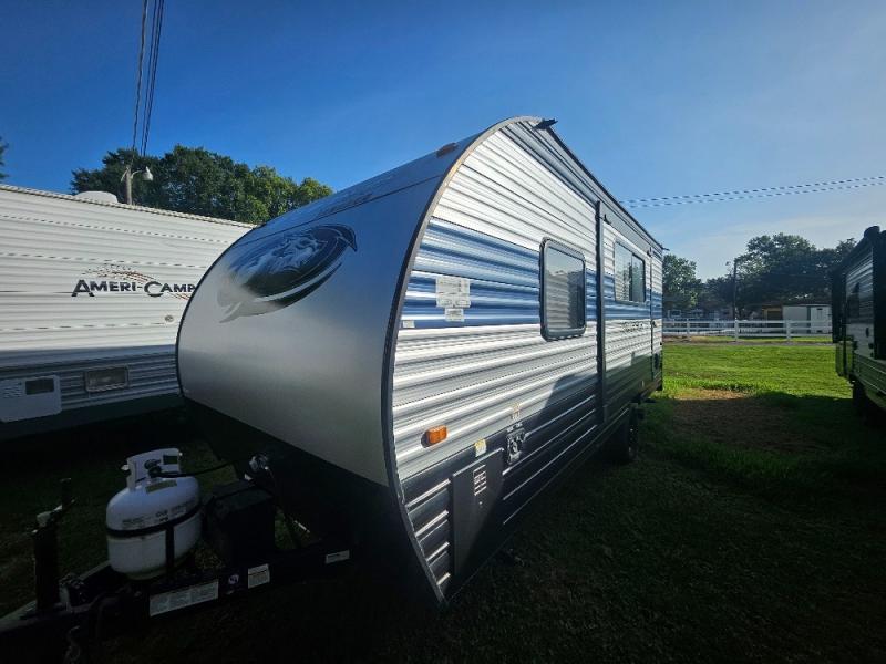 Each one of these Forest River Cherokee Wolf Pup travel trailers and toy haulers are lightweight and easy to tow! They are fully self contained with ample tank capacities, an abundance of storage space, and filled with at home amenities. The aerodynamic smooth radius front profile, the Power Gear frame technology, and the space saver rail design make them easier to maneuver. You will also appreciate the seamless roofing membrane with heat reflectivity to keep the sun from making your unit a hot box. The tongue and groove plywood flooring will hold up for years of fun and the USB charging stations help to keep your electronics at 100% while you're away. Come find the best model for you today!