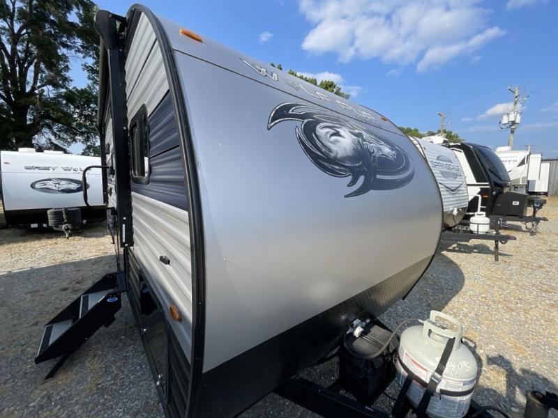 Each one of these Forest River Cherokee Wolf Pup travel trailers and toy haulers are lightweight and easy to tow! They are fully self contained with ample tank capacities, an abundance of storage space, and filled with at home amenities. The aerodynamic smooth radius front profile, the Power Gear frame technology, and the space saver rail design make them easier to maneuver. You will also appreciate the seamless roofing membrane with heat reflectivity to keep the sun from making your unit a hot box. The tongue and groove plywood flooring will hold up for years of fun and the USB charging stations help to keep your electronics at 100% while you're away. Come find the best model for you today!