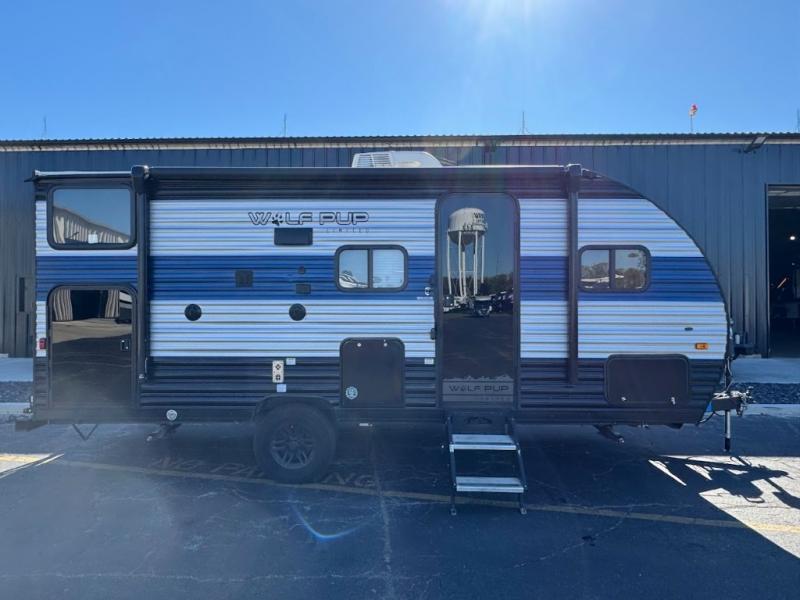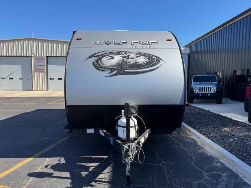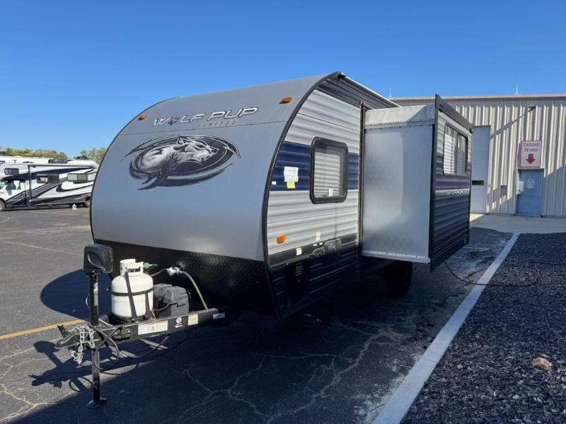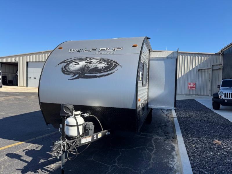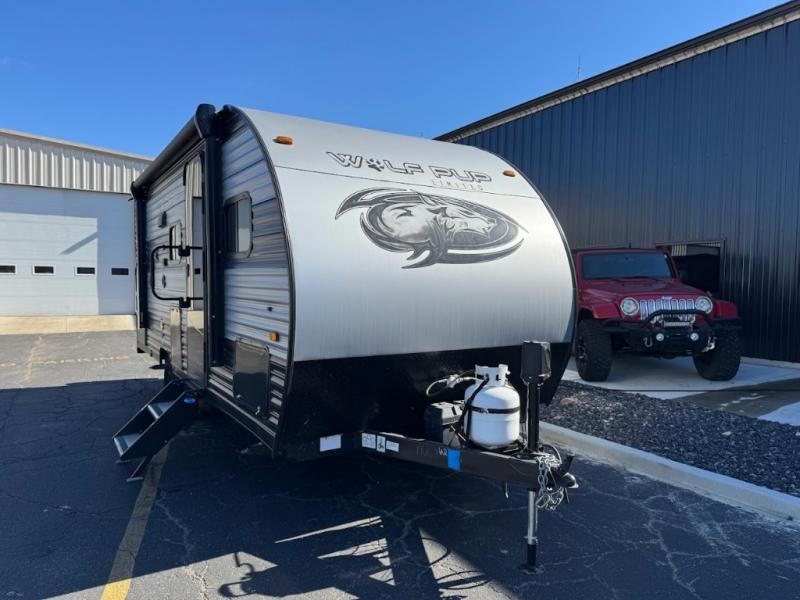 Each one of these Forest River Cherokee Wolf Pup travel trailers and toy haulers are lightweight and easy to tow! They are fully self contained with ample tank capacities, an abundance of storage space, and filled with at home amenities. The aerodynamic smooth radius front profile, the Power Gear frame technology, and the space saver rail design make them easier to maneuver. You will also appreciate the seamless roofing membrane with heat reflectivity to keep the sun from making your unit a hot box. The tongue and groove plywood flooring will hold up for years of fun and the USB charging stations help to keep your electronics at 100% while you're away. Come find the best model for you today!