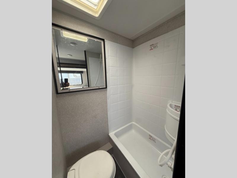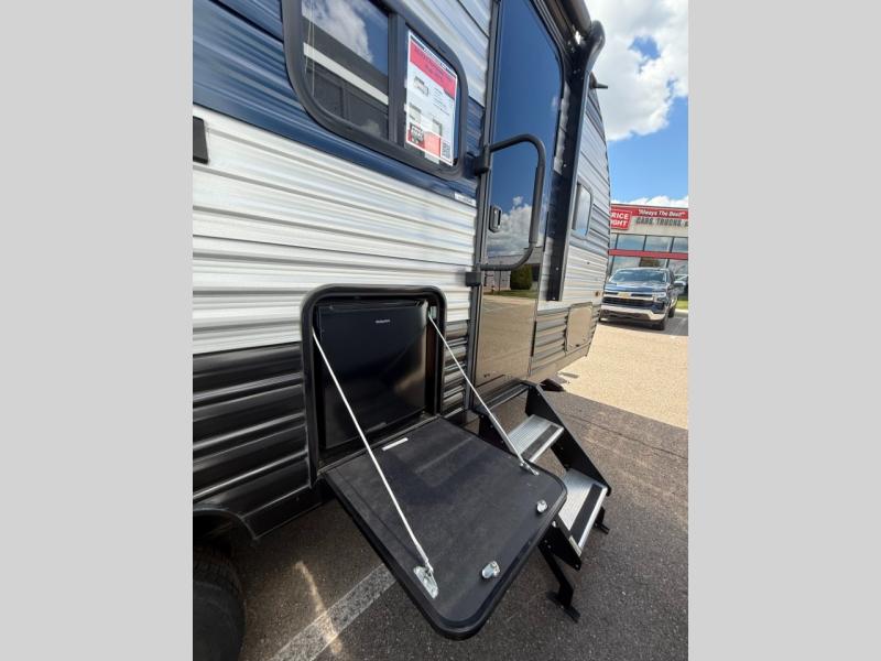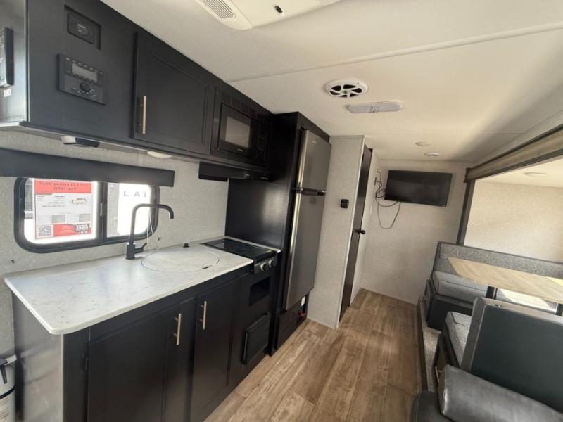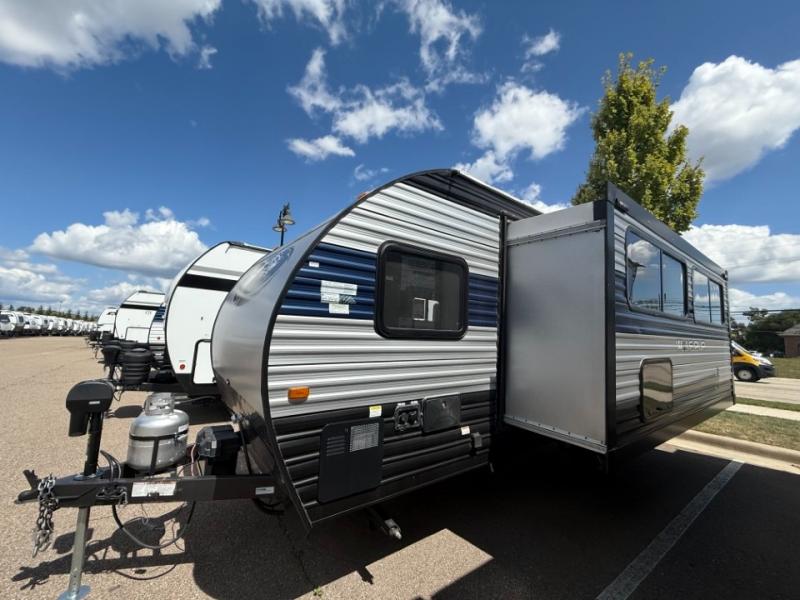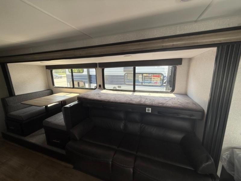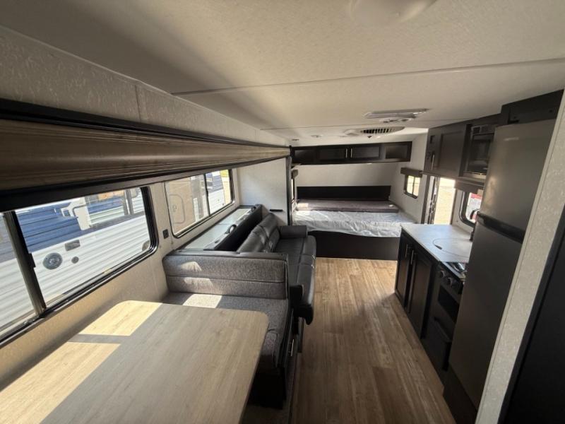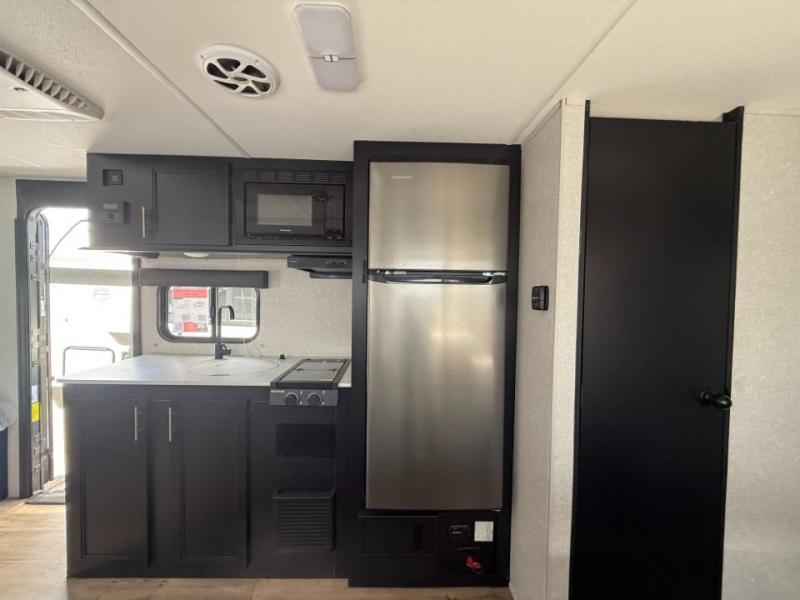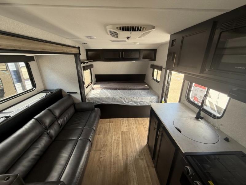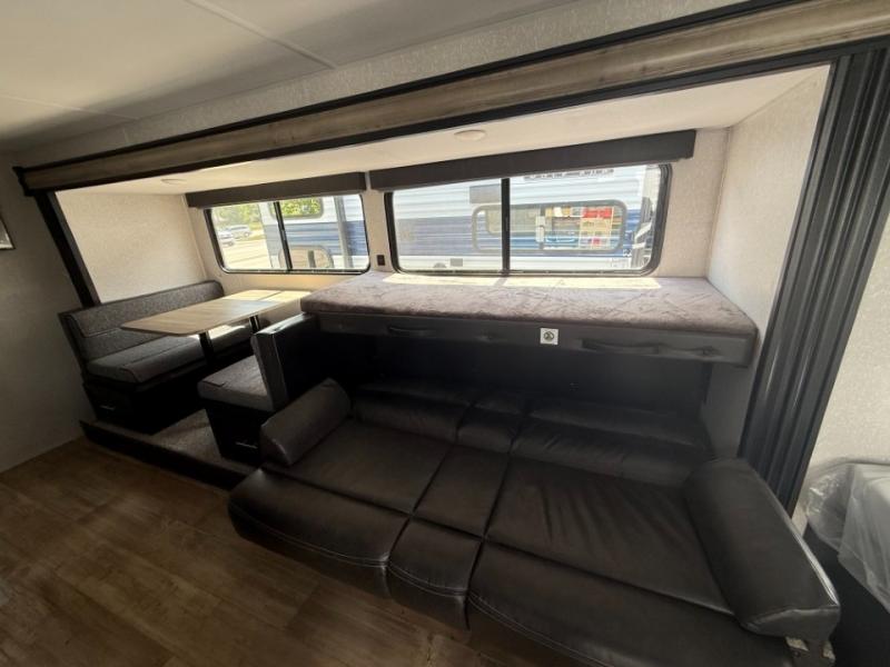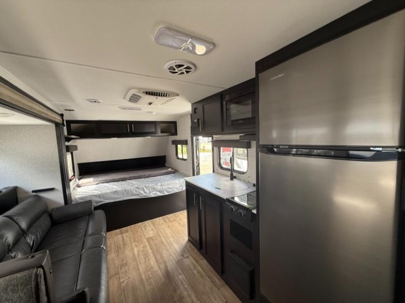 Enjoy plenty of walking around space in this travel trailer with the full slide! Inside the slide is a sofa with a hidden bunk above it and a booth dinette to play card games and enjoy delicious meals prepared with the high output cooktop and 11 cu. ft. Cannon high efficiency refrigerator. There is also an outside mini kitchen to cook your meals, outside storage to keep your camping chairs, and a 12' power awning to protect you while you cook and relax in the chair. For your entertainment needs, there is an outside TV mount and a TV mount location next to the rear corner bathroom which has a tub/shower to get squeaky clean each morning!