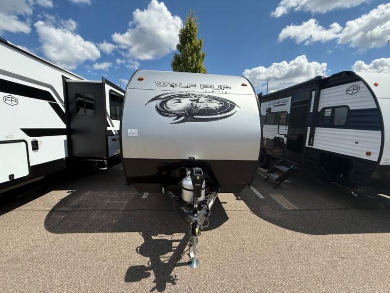 Each one of these Forest River Cherokee Wolf Pup travel trailers and toy haulers are lightweight and easy to tow! They are fully self contained with ample tank capacities, an abundance of storage space, and filled with at home amenities. The aerodynamic smooth radius front profile, the Power Gear frame technology, and the space saver rail design make them easier to maneuver. You will also appreciate the seamless roofing membrane with heat reflectivity to keep the sun from making your unit a hot box. The tongue and groove plywood flooring will hold up for years of fun and the USB charging stations help to keep your electronics at 100% while you're away. Come find the best model for you today!