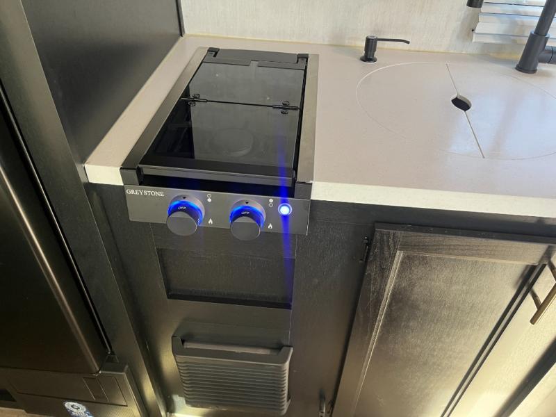 With the Cherokee Sleep System, you will have a versatile camping experience! It lets you easily convert the front queen bed into a comfortable sofa to sit on during the day. Freshen up each morning in the full rear bathroom with the tub/shower and large sink with cabinet storage below it and mirror above it. Fill your bellies with the perishables stored in the 11 cu. ft. Cannon high efficiency refrigerator and cook them on the high output cooktop then enjoy them at the booth dinette. You could even prepare a meal while breathing in some fresh air at the outside mini kitchen while staying protected by the 12' power awning. Easily store all of your outdoor gear in the outside storage area too!