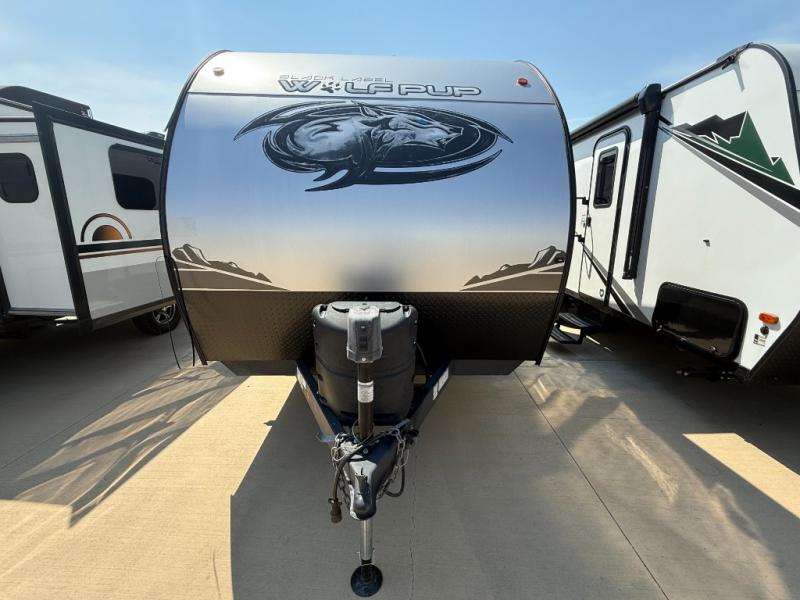 Come see how easy these Forest River Cherokee Wolf Pup Black Label travel trailers and toy hauler are to haul! They are fully self contained with ample tank capacities, an abundance of storage space, and filled with at home amenities. The aerodynamic smooth radius front profile, the Power Gear frame technology, and the space saver rail design make them easier to maneuver. You will also appreciate the seamless roofing membrane with heat reflectivity to keep the sun from making your unit a hot box. In addition to all of the standard features included, they each come with Black Label features including thermo-foil arctic insulation, a gel coated fiberglass exterior, a power tongue jack, and much more. Choose the best model for you today!