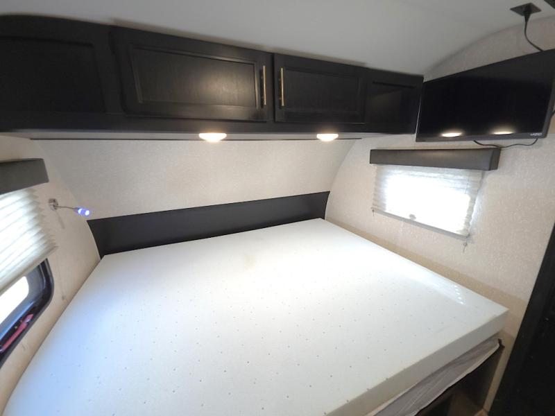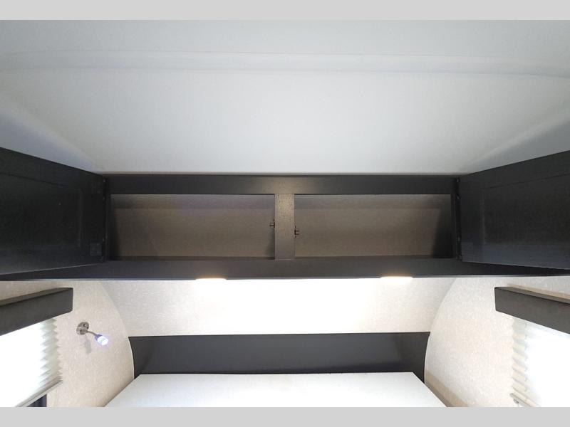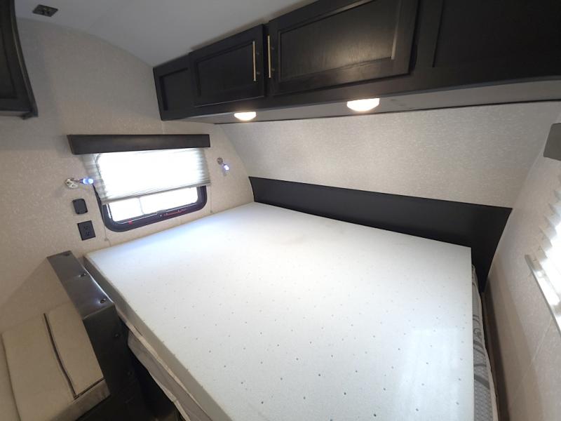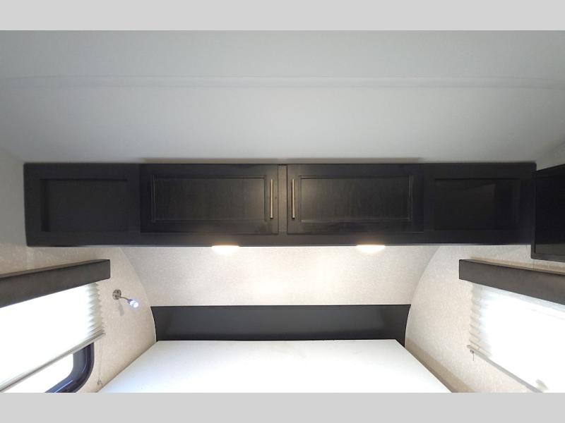 Enjoy restful nights on the front queen bed with overhead storage to keep essentials within reach.