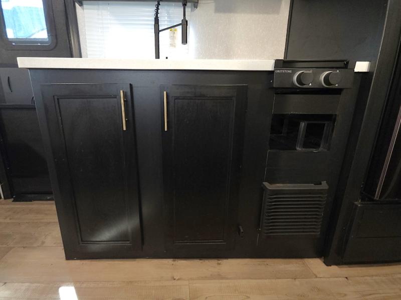 Cook outdoors with ease using the exterior mini kitchen, all while staying protected under the 12 foot power awning. There is even an outside TV mount for entertainment while you grill.
