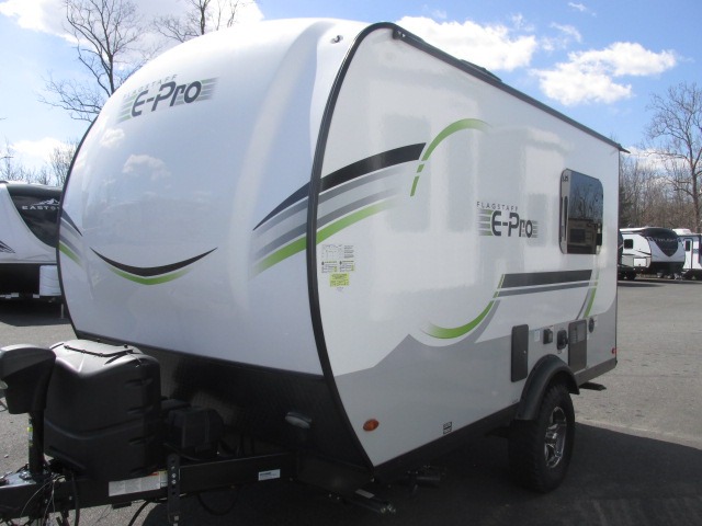 With any Flagstaff E-Pro travel trailer or toy hauler by Forest River, you will experience lightweight towing, style and features that will meet your needs, plus amenities that give you more than you expected! Built with interior and exterior Azdel construction, tongue and grove plywood flooring, and a vacuum laminated roof and walls, plus torsion axle, Rubber-Ryde suspension, and a tire pressure monitoring system for safety while traveling. And the 190-watt roof mount solar panel with 1,000-watt inverter will allow you to stay off-grid if you like. The interior offers a comfortable environment with the choice to use the air conditioner or furnace, and an AM/FM stereo with Bluetooth and USB will allow you to listen to your favorite tunes and keep your cell phone charged. Make your selection today!