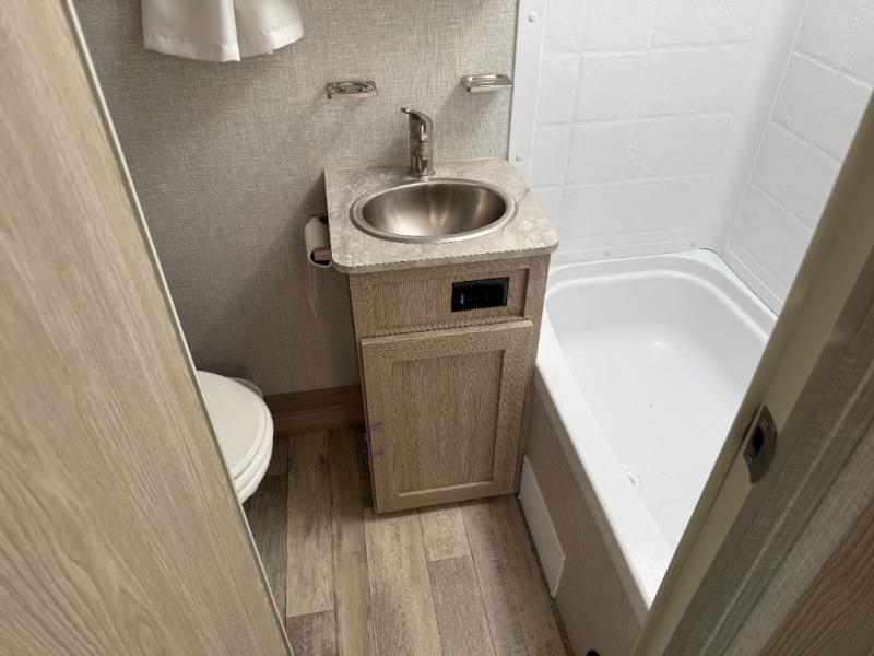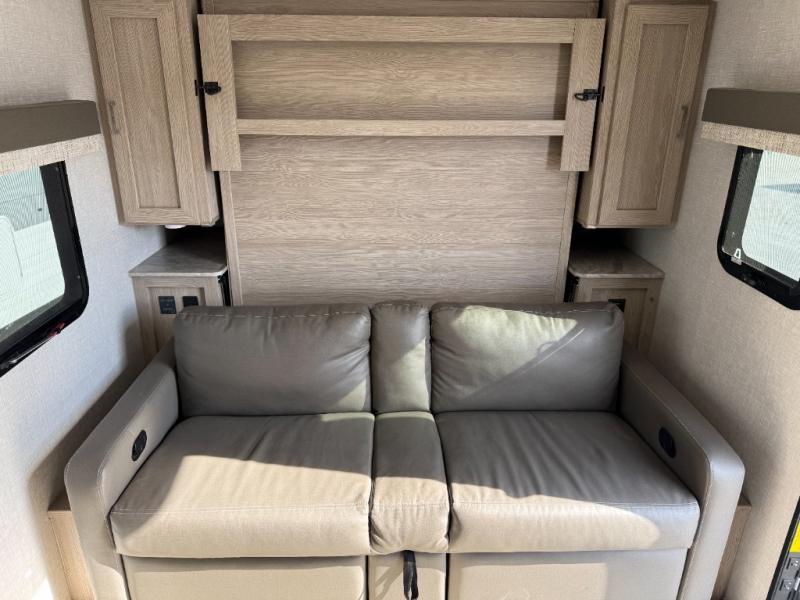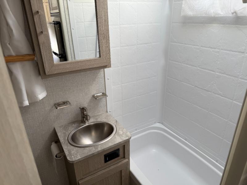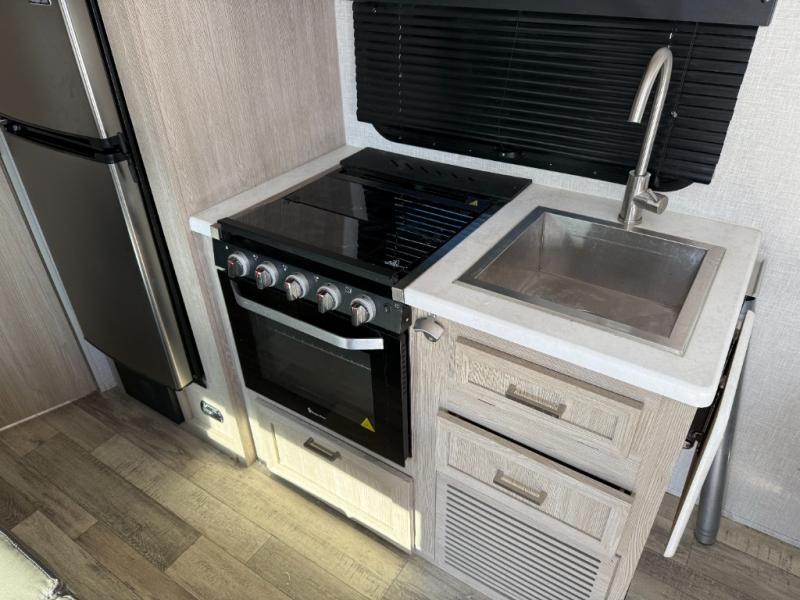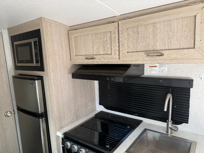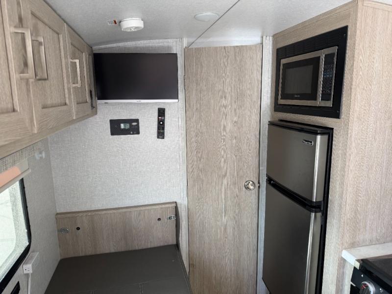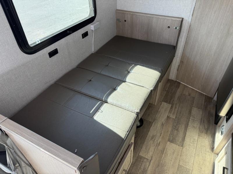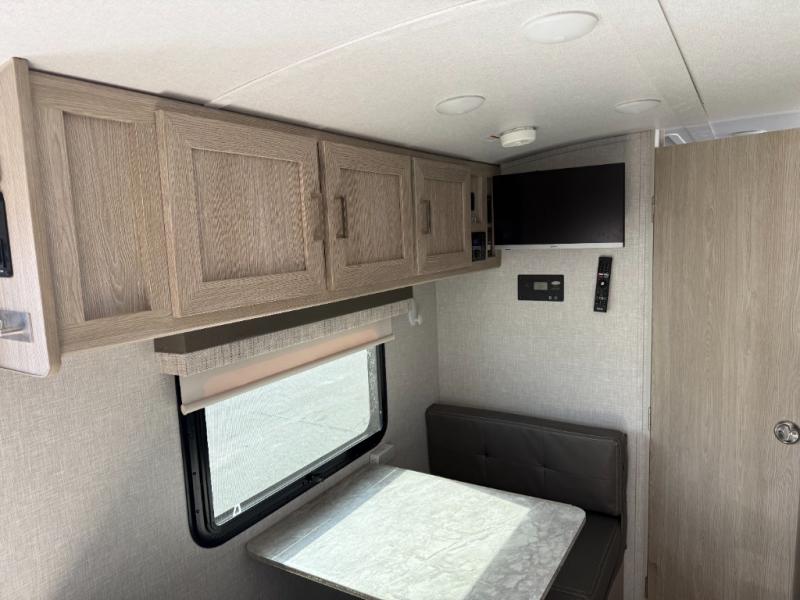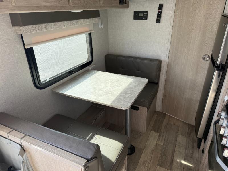 Whether you enjoy staying at the campground for a weekend or longer and/or you enjoy off-grid camping, this 20'2" long trailer gives you lots of interior space and versatility to enjoy each and every trip. From the Murphy bed/sofa combo up front offering sleeping space and seating depending on which you prefer at the time, to the full rear bathroom which also offers linen storage, you will have everything you need. And the kitchen cooktop, microwave and 12V refrigerator allow you to make meals and store leftovers. Two can dine at the booth dinette or you can eat outdoors under the 13' power awning.