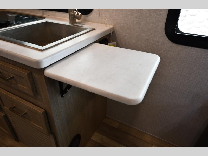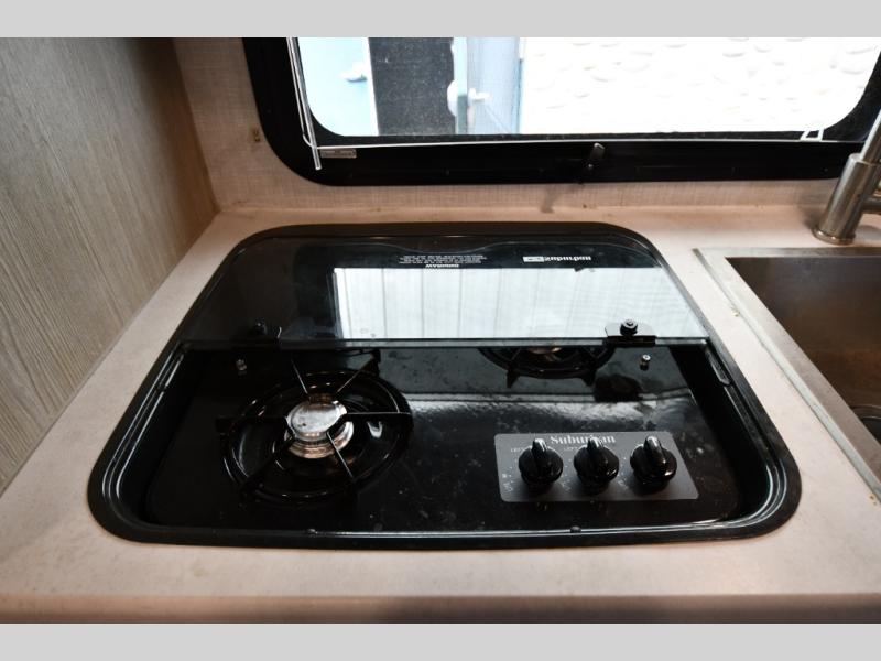 Whether you enjoy staying at the campground for a weekend or longer and/or you enjoy off-grid camping, this 20'2" long trailer gives you lots of interior space and versatility to enjoy each and every trip. From the Murphy bed/sofa combo up front offering sleeping space and seating depending on which you prefer at the time, to the full rear bathroom which also offers linen storage, you will have everything you need. And the kitchen cooktop, microwave and 12V refrigerator allow you to make meals and store leftovers. Two can dine at the booth dinette or you can eat outdoors under the 13' power awning.