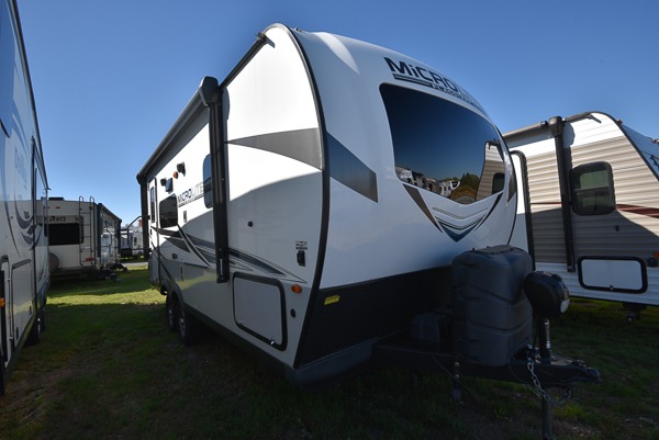 Each Flagstaff Micro Lite travel trailer by Forest River features laminated fiberglass sidewalls, sleek tinted frameless windows, and Azdel composite panels for added strength and support. You can easily tow these travel trailers with an SUV since they are so lightweight, and there is a power tongue jack for quick and easy set up. Some of the convenient amenities you will enjoy are the Teton All-In-One WiFi booster/LTE prep and antenna, the double battery boxes, Key-Alike locks, plus a Maxxair fan with a cover to keep the fresh air moving in your RV. You will love the modern look of the Newport Ash or Autumn Wood cabinetry, plus there are solid wood cabinet doors, solid surface kitchen countertops, and a Showermiser water saving system in the bathroom. Choose a Flagstaff Micro Lite travel trailer and you won't be disappointed!