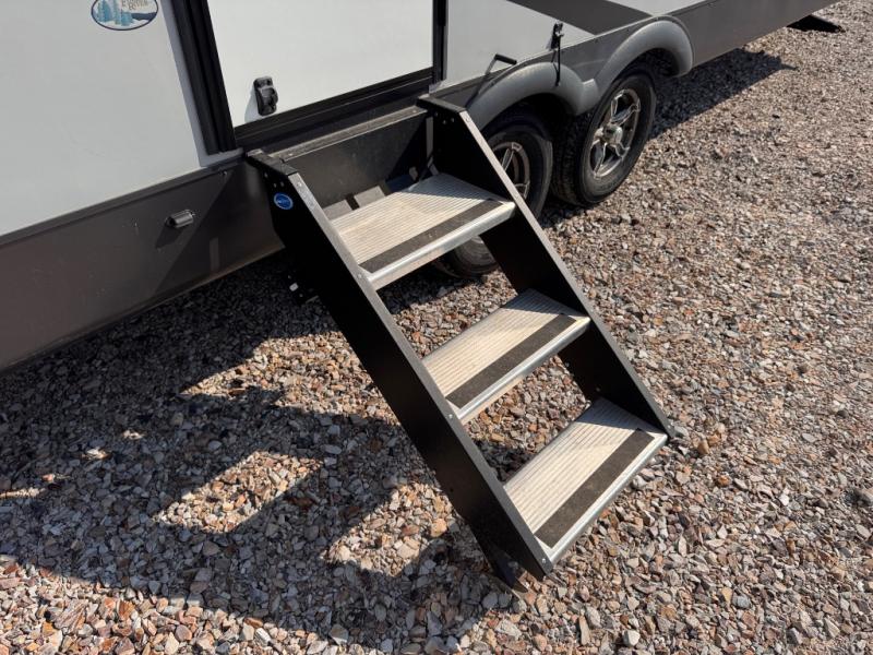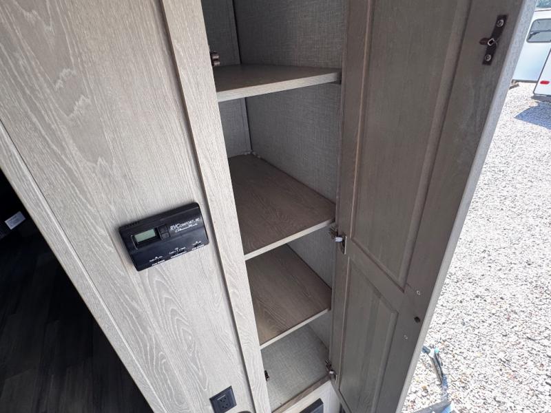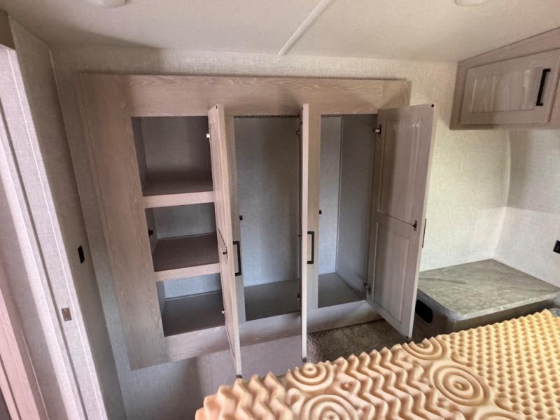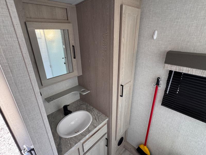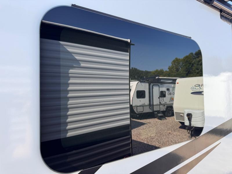 Each Flagstaff Micro Lite travel trailer by Forest River features laminated fiberglass sidewalls, sleek tinted frameless windows, and Azdel composite panels for added strength and support. You can easily tow these travel trailers with an SUV since they are so lightweight, and there is a power tongue jack for quick and easy set up. Some of the convenient amenities you will enjoy are the Teton All-In-One WiFi booster/LTE prep and antenna, the double battery boxes, Key-Alike locks, plus a Maxxair fan with a cover to keep the fresh air moving in your RV. You will love the modern look of the Newport Ash or Autumn Wood cabinetry, plus there are solid wood cabinet doors, solid surface kitchen countertops, and a Showermiser water saving system in the bathroom. Choose a Flagstaff Micro Lite travel trailer and you won't be disappointed!
