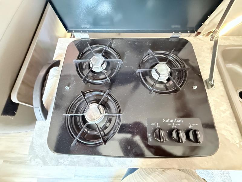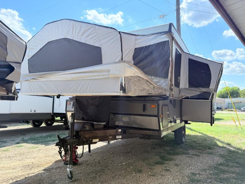 You will be so excited to get your hands on this Flagstaff SE folding pop-up camper! This camper is truly ready for the sports enthusiast because it comes with a 28" x 84" front deck storage with expanded metal decking, so you can bring along the sports equipment that best suits your taste. The exterior is even more useful with the outdoor griddle and 10' 6" awning, and once you step foot inside, you'll be met with a swing galley directly across from the entrance. There are two cabinets that can be used for interior storage, and the two tent beds on either side of this camper stay out of the way of your interior living space. For relaxing, there is a booth dinette and gaucho bed with a drop-leaf table in between, and you can make this camper more accommodating by adding the optional shower/Port-A-Pottie.