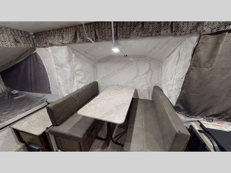 You'll have an amazing time exploring with this Flagstaff SE folding pop-up camper! The whole camper is ready for you to spend the weekend enjoying your favorite outdoor sports. You can keep it simple by biking along the trails, or you can take it up a notch with kayaks out on the water. Whatever you choose to do, you'll be able to come back to this camper every time you need to get refreshed with a meal or a rest. The two tent beds will provide a comfortable night of sleep to prepare you for the next day's adventures, and the booth dinette and gaucho bed can also be used as sleeping space for other friends or family. Making hearty meals will be easy to do with the three-burner range, and you can keep snacks stored in the three-way refrigerator. You can even add the optional shower/Port-A-Pottie to this camper.