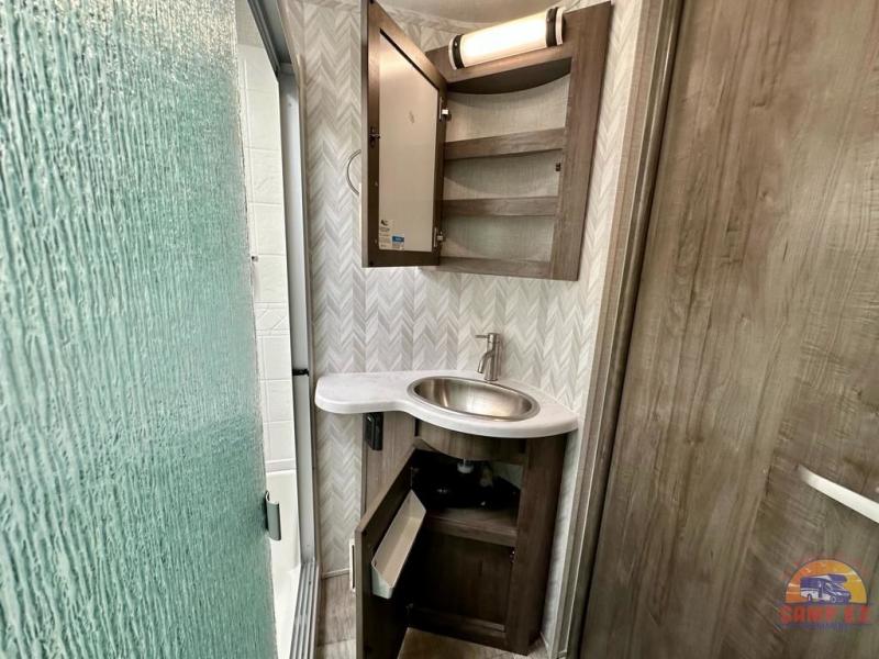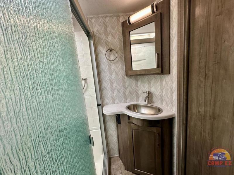 With any Flagstaff Super Lite fifth wheel by Forest River the towing features include the LCI turning point pin box hitch for easy maneuvering, the TST tire pressure monitor system with a monitor providing safety on the road, Easy Lube axles and Nev-R adjust brakes, and rear observation camera prep. Each is built with 6 sided aluminum framed walls, floor and roof, a radius roof with a vaulted interior ceiling, thermostatically controlled heated holding tanks and an enclosed underbelly allowing you to travel during any season. The interior offers a Water-Pur filtration system, hidden hinge cabinet doors, a porcelain residential-style bowl toilet, a headboard and residential bedding for style and comfort and so much more! Choose a lightweight, towable by half-ton or three-quarter ton pickup truck Flagstaff Super Lite today!
