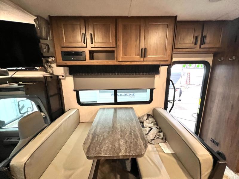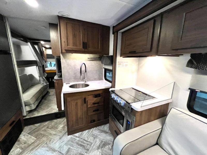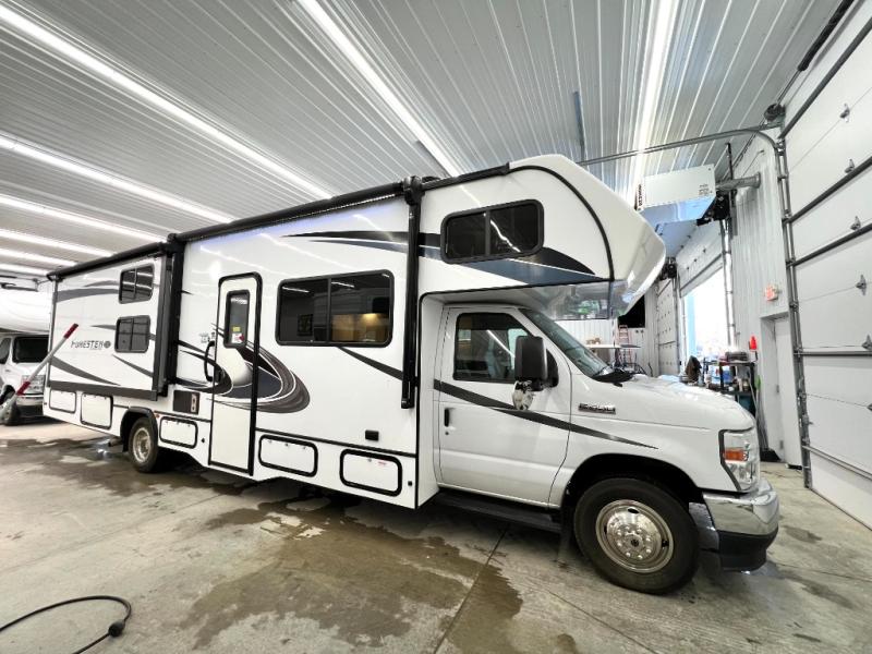 With any Forester LE Class C gas motorhome by Forest River, you will enjoy premier features such as the color back-up camera/side view cameras with rear view mirror monitor especially when parking into a campsite, the Winegard Air 360+ digital antenna, and the 15,000 BTU ceiling ducted, ultra quiet roof air with heat pump when traveling during the warmer months. The exterior includes aluminum framed laminated sidewalls, gel coat exterior fiberglass, a one-piece fiberglass front cap, and slide room toppers. Some of the interior top features are the Maxx Air multi-speed power fan with cover in the kitchen, the overhead bunk ladder, the high pressure oxygen infused shower head, and the blackout roller shades for a good night's sleep. Make your selection today!