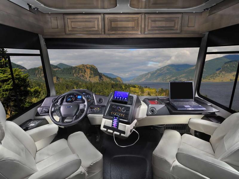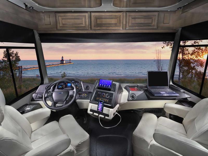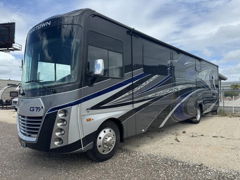 Start exploring your favorite destinations with one of these Forest River Georgetown 7 Series Class A gas motorhomes! Their solid surface kitchen countertops and residential stainless steel appliance package will have you feeling right at home. The Arctic package lets you travel farther into the year, and the automatic hydraulic leveling jacks will keep your unit leveled where ever you set up. The construction consists of a multi-layered laminated roof system that includes tubular aluminum framing, a crowned fiberglass roof, and block foam insulation. The vacuum-bond laminated sidewalls not only have a gelcoat fiberglass exterior and tubular aluminum framing, but also EGS metal backers to increase the support for the interior cabinetry. Come find your favorite model today!