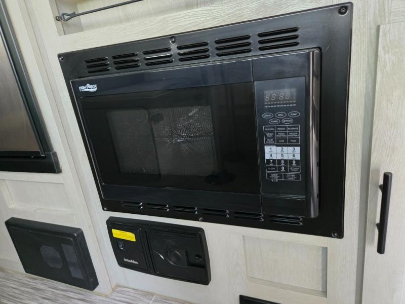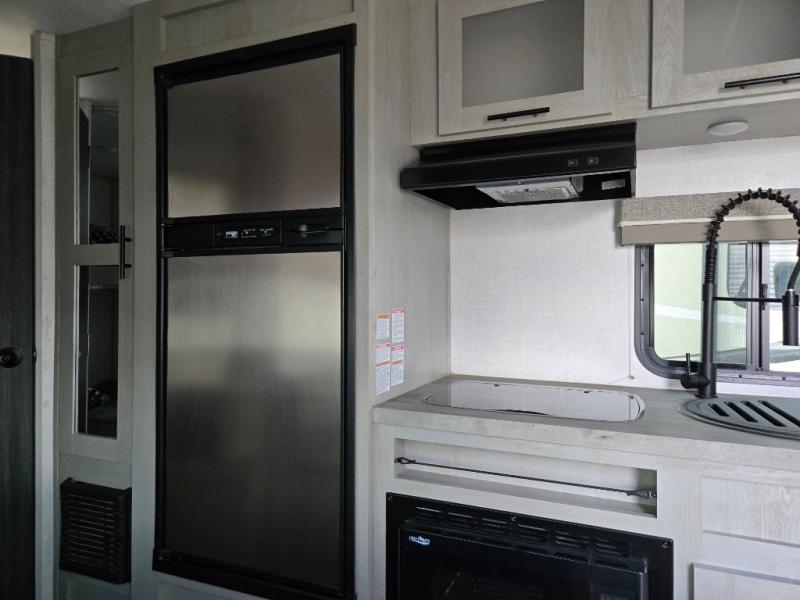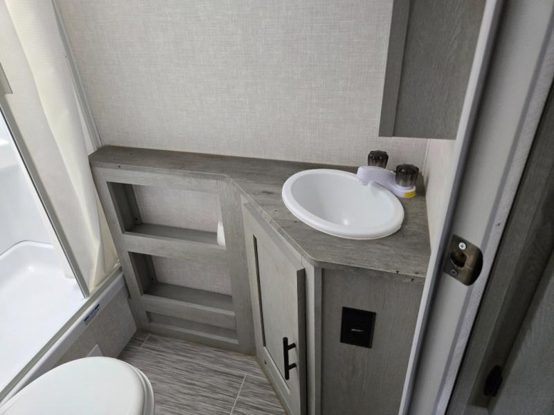 With any IBEX travel trailer or toy hauler by Forest River, the interior offers stainless steel appliances for style, seamless countertops for durability and easy care, a largest-in-class refrigerator for more cold storage, and a central vacuum system to easily clean up after a fun, messy day. The PVC roof, the Azdel construction, and the Cold Weather package with a heated and enclosed underbelly, tank pad heaters and an enclosed termination system provides solid construction plus allows you to travel during any season. And the all terrain tires and increased ground clearance allow you to find the perfect spot to setup camp!