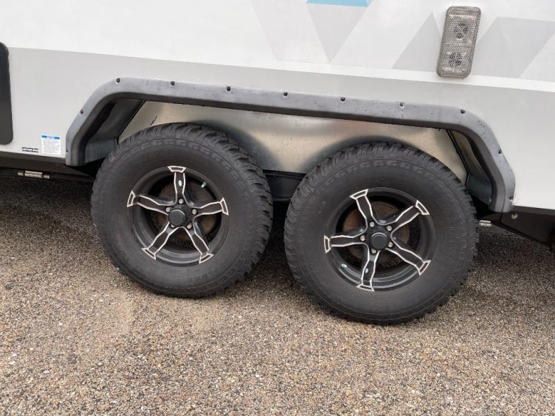 With any IBEX travel trailer or toy hauler by Forest River, the interior offers stainless steel appliances for style, seamless countertops for durability and easy care, a largest-in-class refrigerator for more cold storage, and a central vacuum system to easily clean up after a fun, messy day. The PVC roof, the Azdel construction, and the Cold Weather package with a heated and enclosed underbelly, tank pad heaters and an enclosed termination system provides solid construction plus allows you to travel during any season. And the all terrain tires and increased ground clearance allow you to find the perfect spot to setup camp!