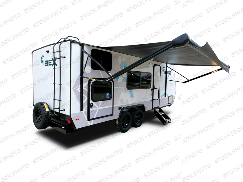 With any IBEX travel trailer or toy hauler by Forest River, the interior offers stainless steel appliances for style, seamless countertops for durability and easy care, a largest-in-class refrigerator for more cold storage, and a central vacuum system to easily clean up after a fun, messy day. The PVC roof, the Azdel construction, and the Cold Weather package with a heated and enclosed underbelly, tank pad heaters and an enclosed termination system provides solid construction plus allows you to travel during any season. And the all terrain tires and increased ground clearance allow you to find the perfect spot to setup camp!