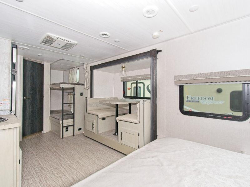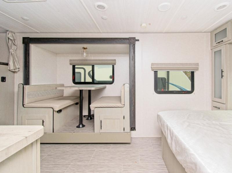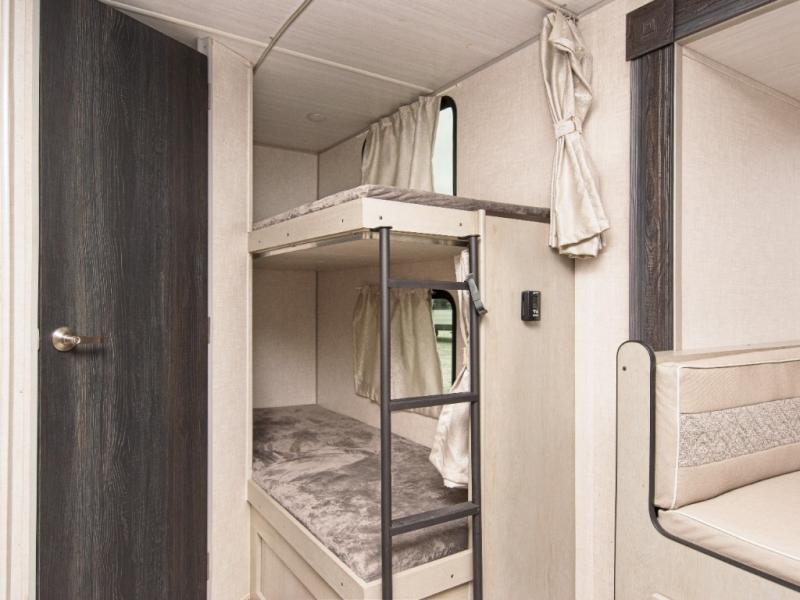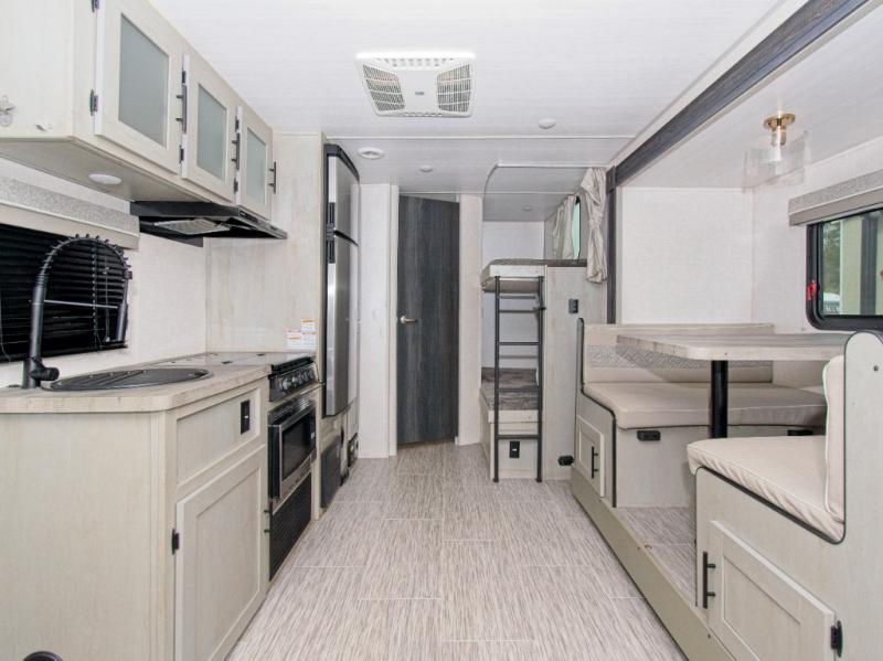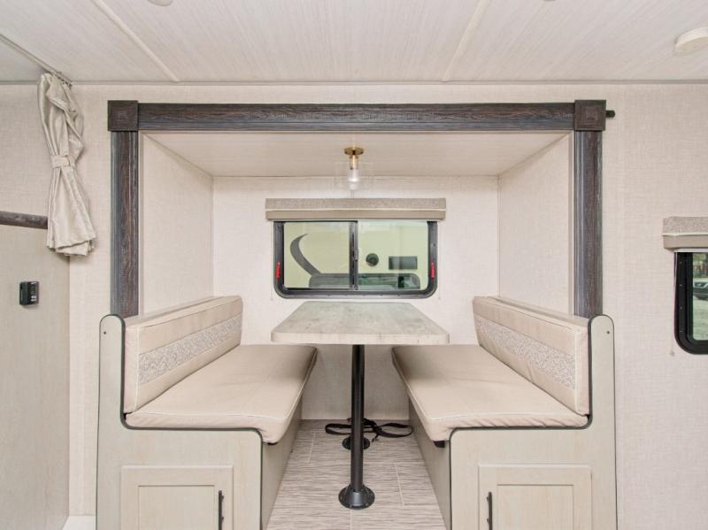 The Forest River IBEX 20BHS offers a spacious, slide-out dinette for extra room and bunk beds to comfortably accommodate family and friends on your next adventure.